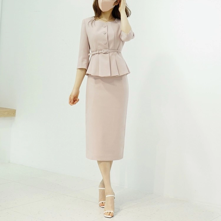 여름 스판 스커트 H라인 미디 슬릿 정장치마