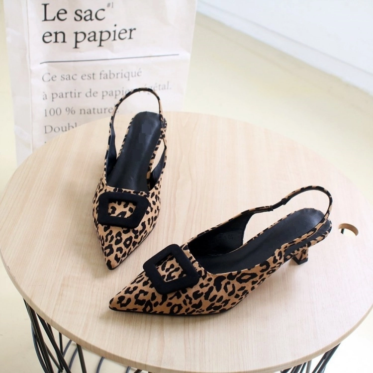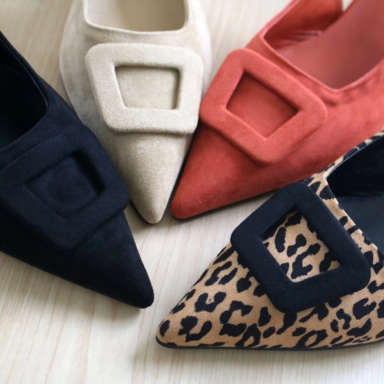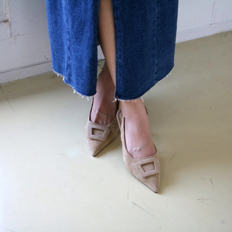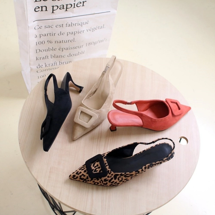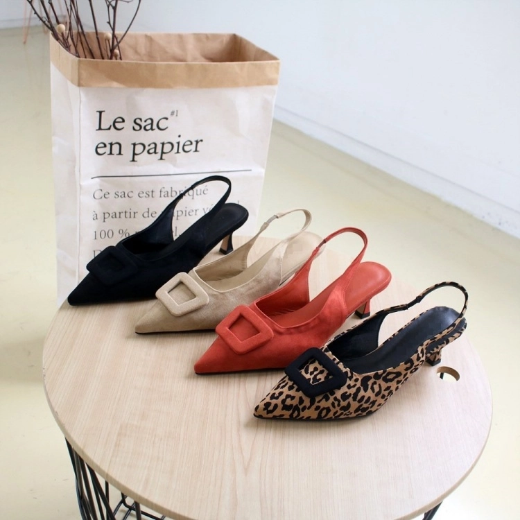 스퀘어 버클 스웨이드 미들 스틸레토 슬링백 힐 6cm