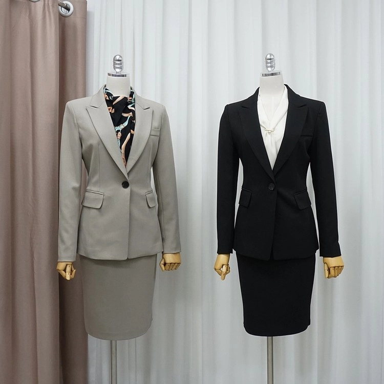 유니폼룩 스판 치마정장세트 출근코디