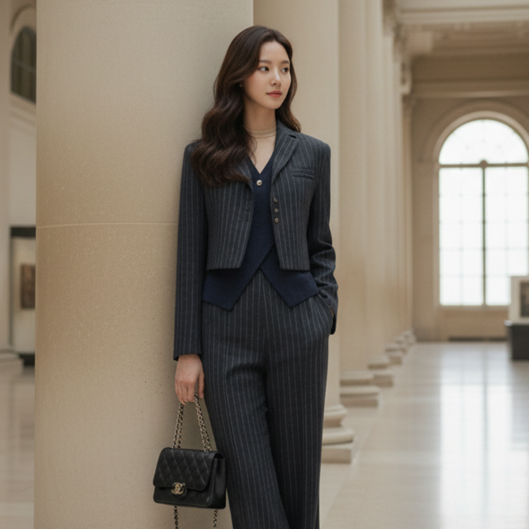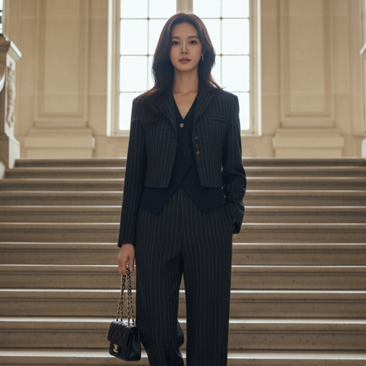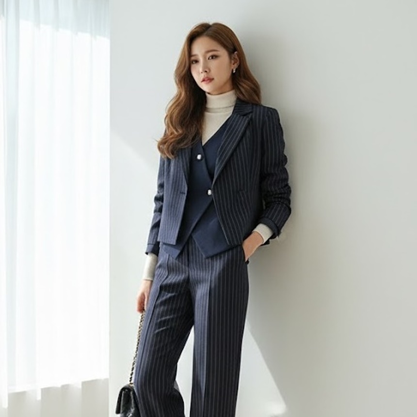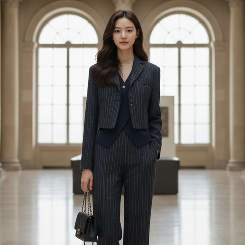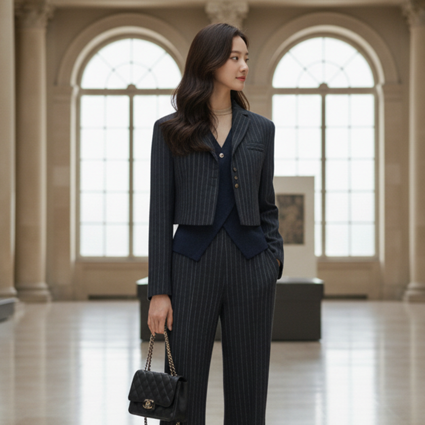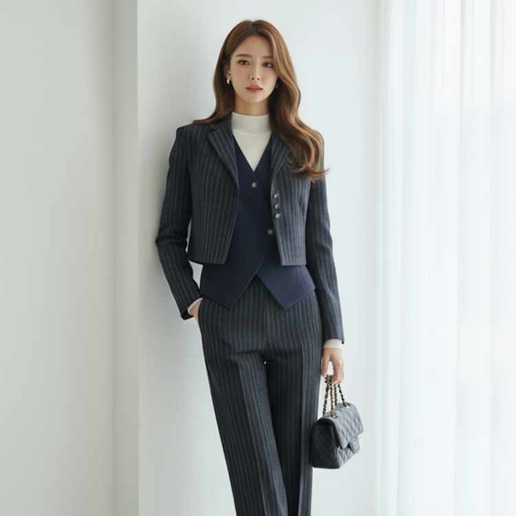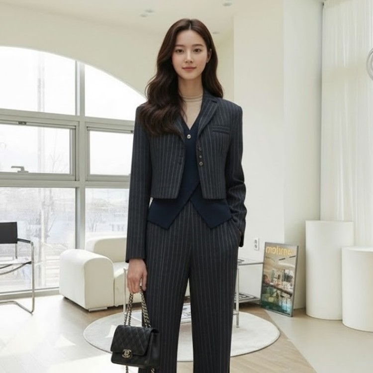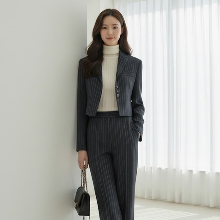 유니크 스트라이프 크롭 자켓 출근룩 하객룩