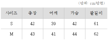 사이즈는 S, M으로