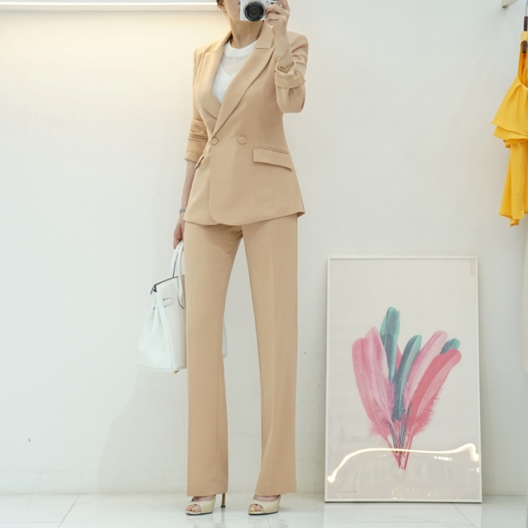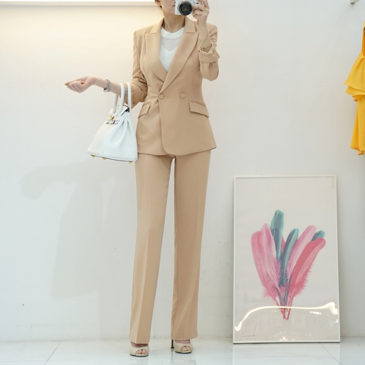 [컬러추가] 하이웨스트 와이드 일자 슬랙스 여자수트세트
