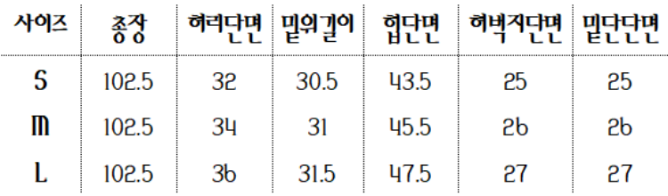하단 사이즈 표를
