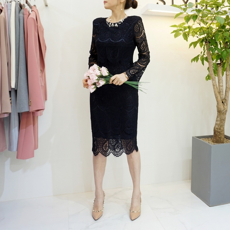 시스루 웨이브 레이스 슬림 H라인원피스