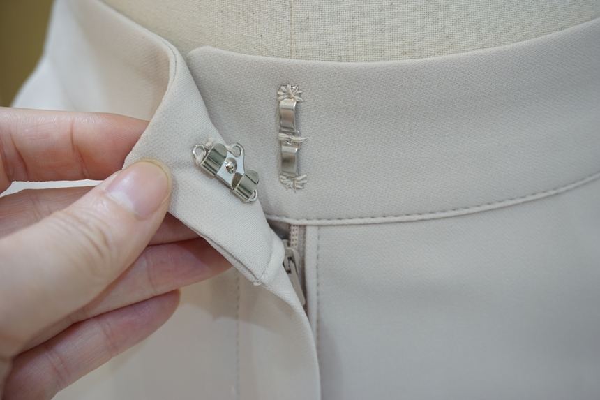 후크 여밈으로 깔끔하면서도 포멀한 느낌입니다
