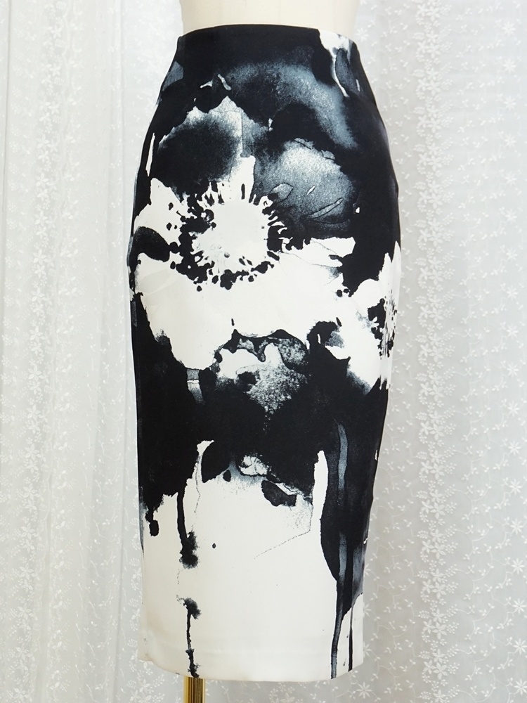 컬러추가 플라워 하이웨스트 슬림 H라인 스커트