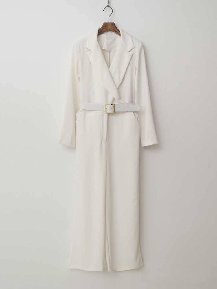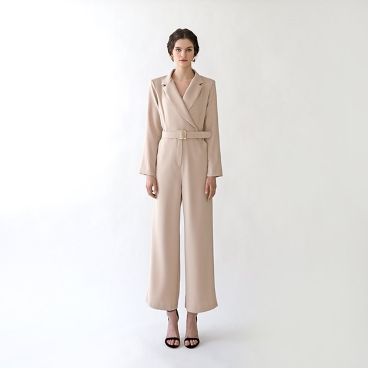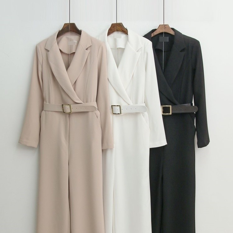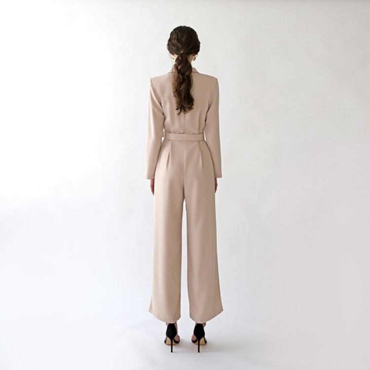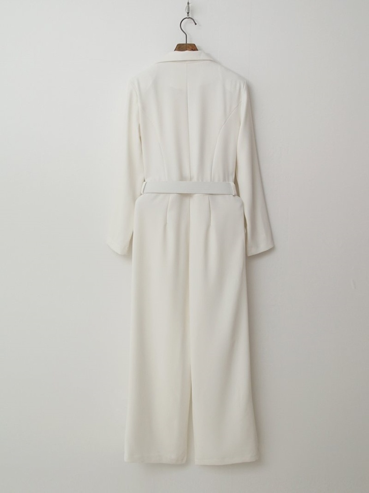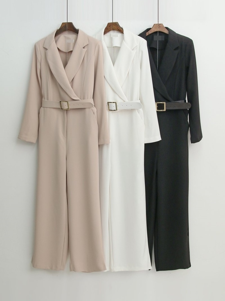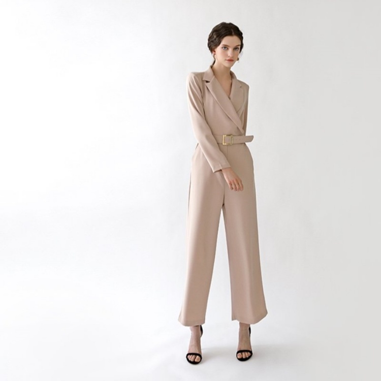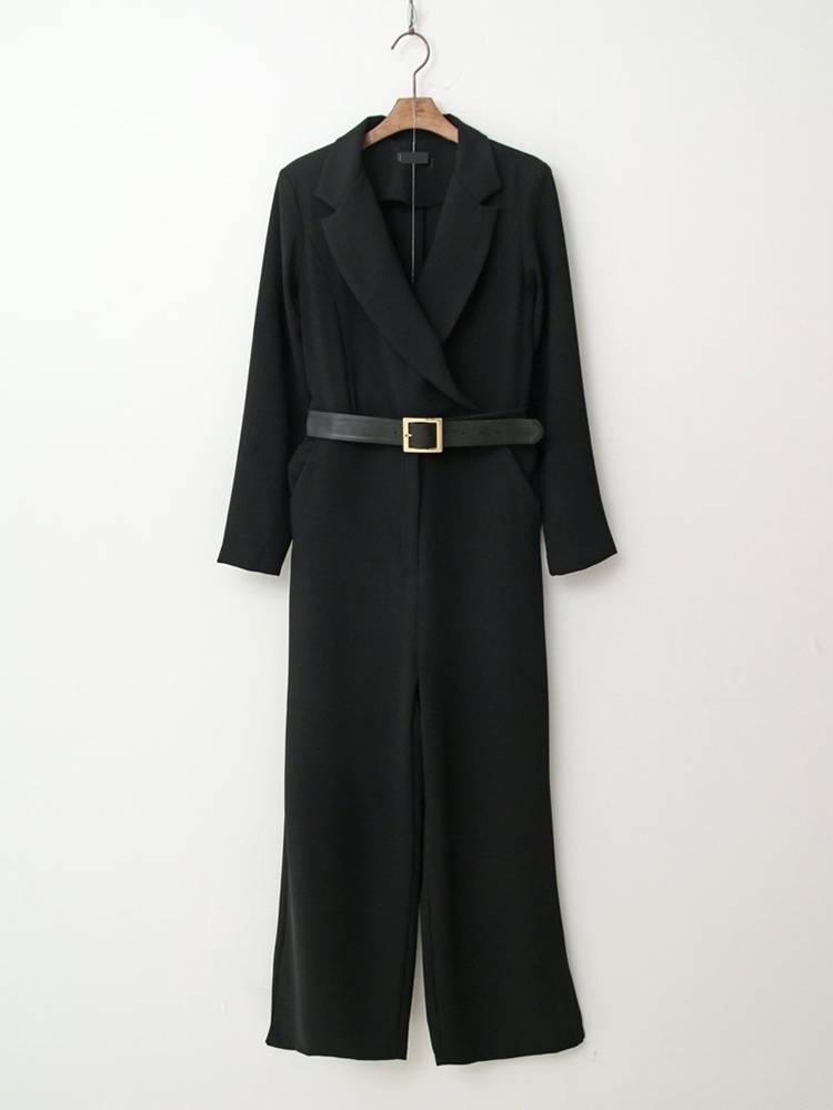 테일러드 카라 벨티드 긴팔 정장 와이드 점프수트
