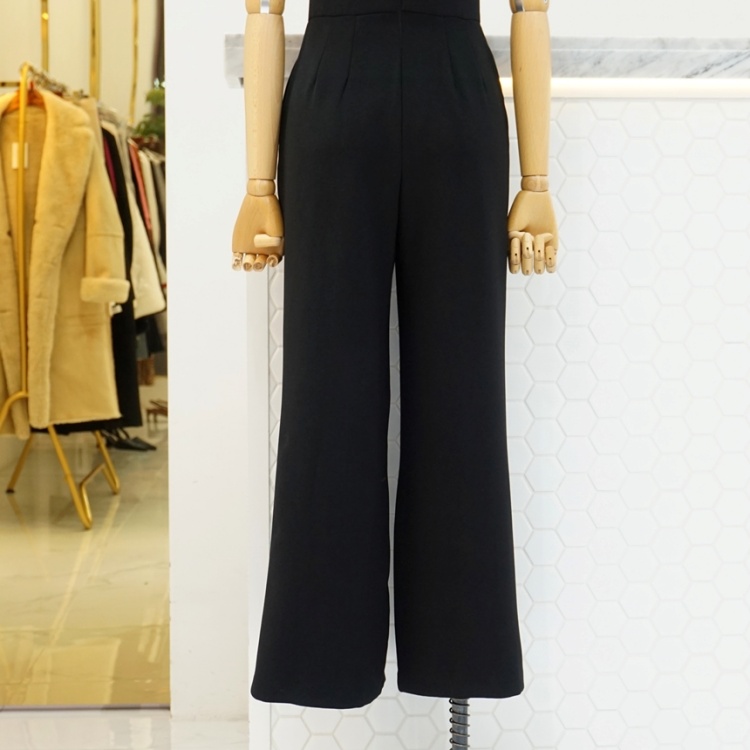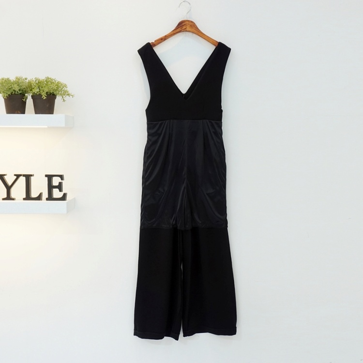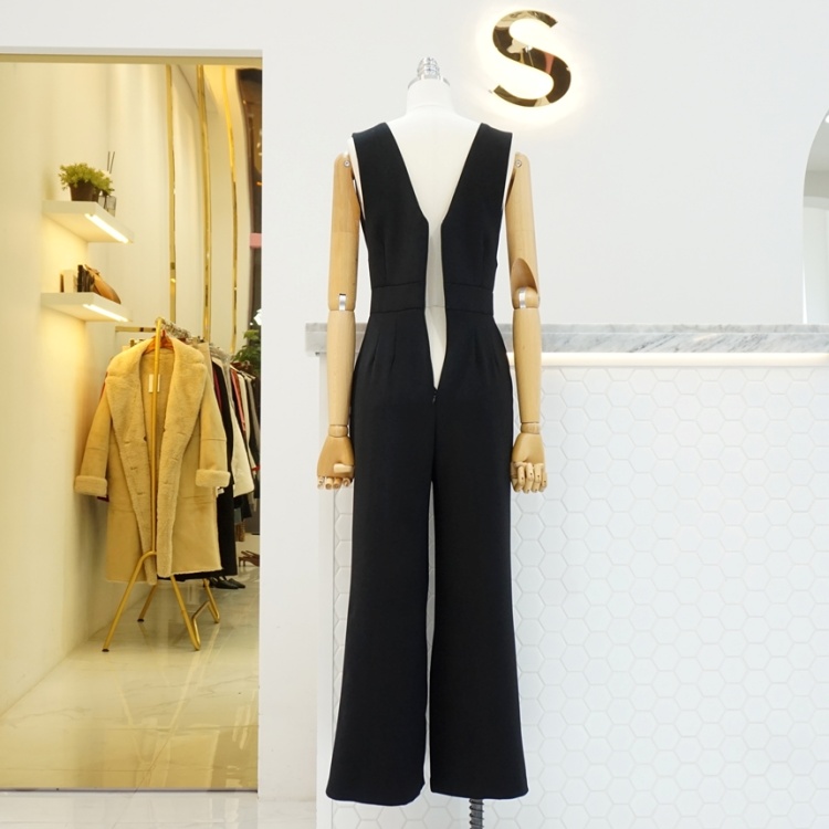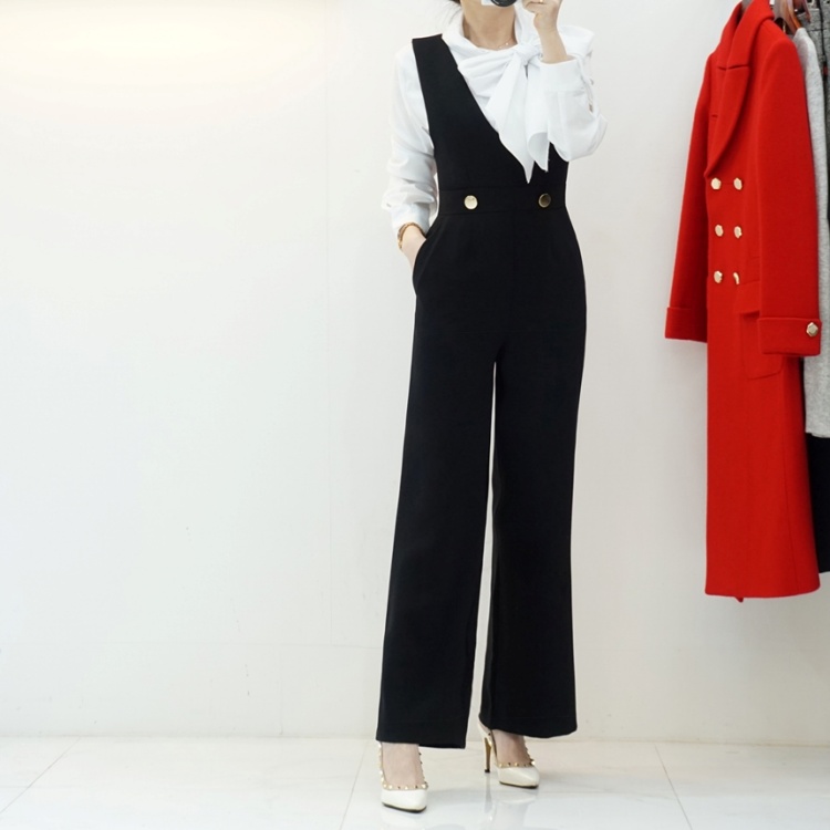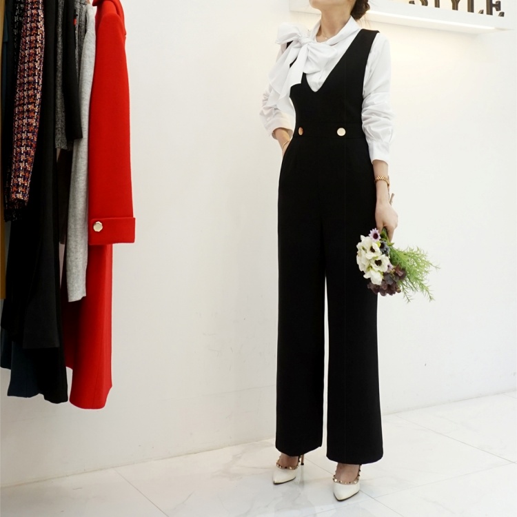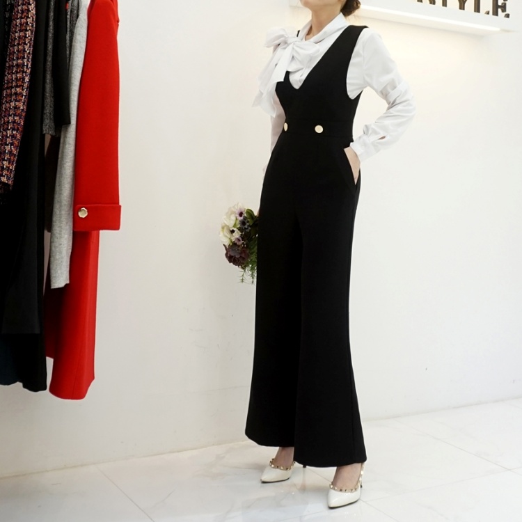 브이넥 골드버튼 멜빵 점프수트 팬츠