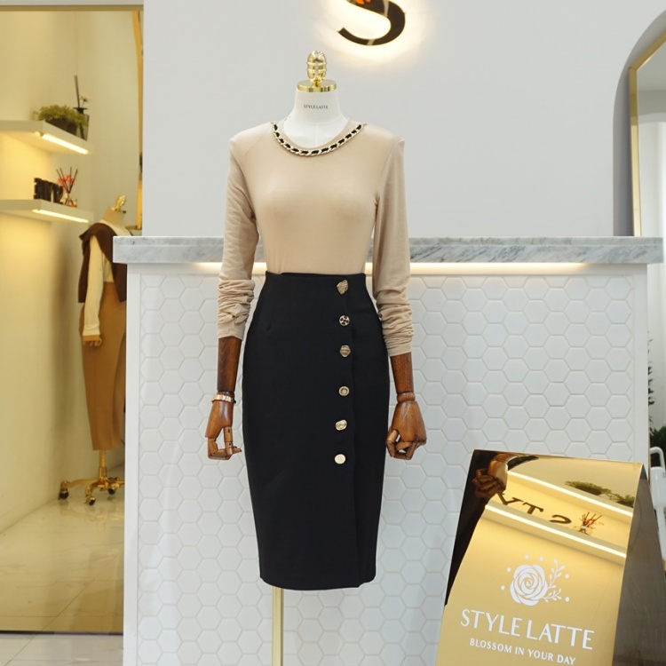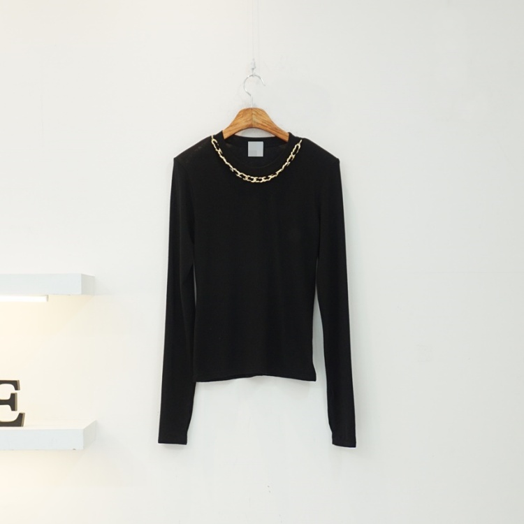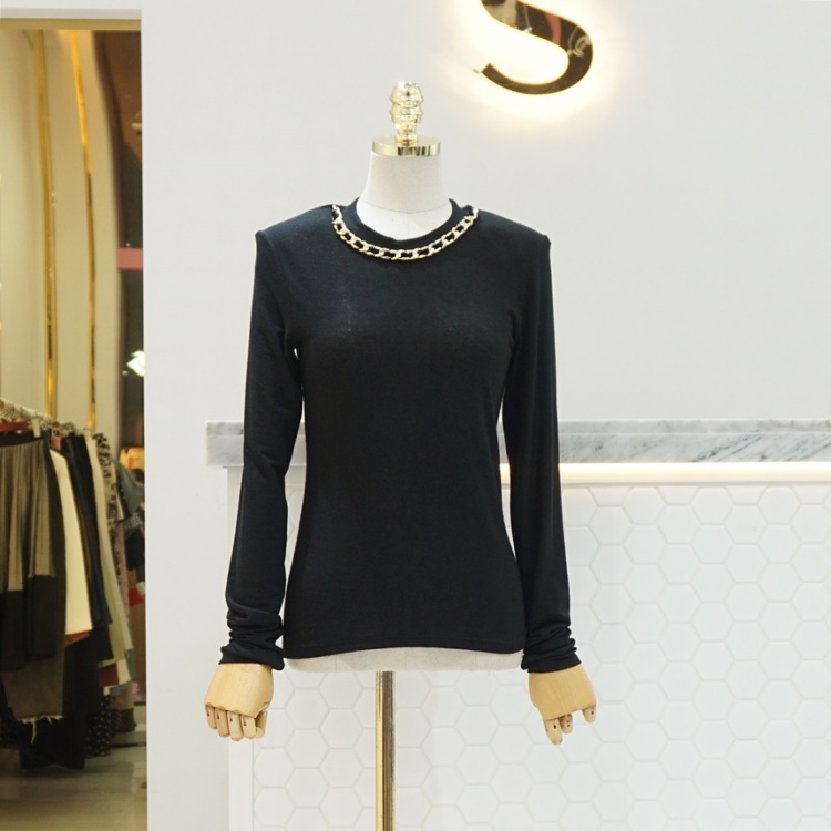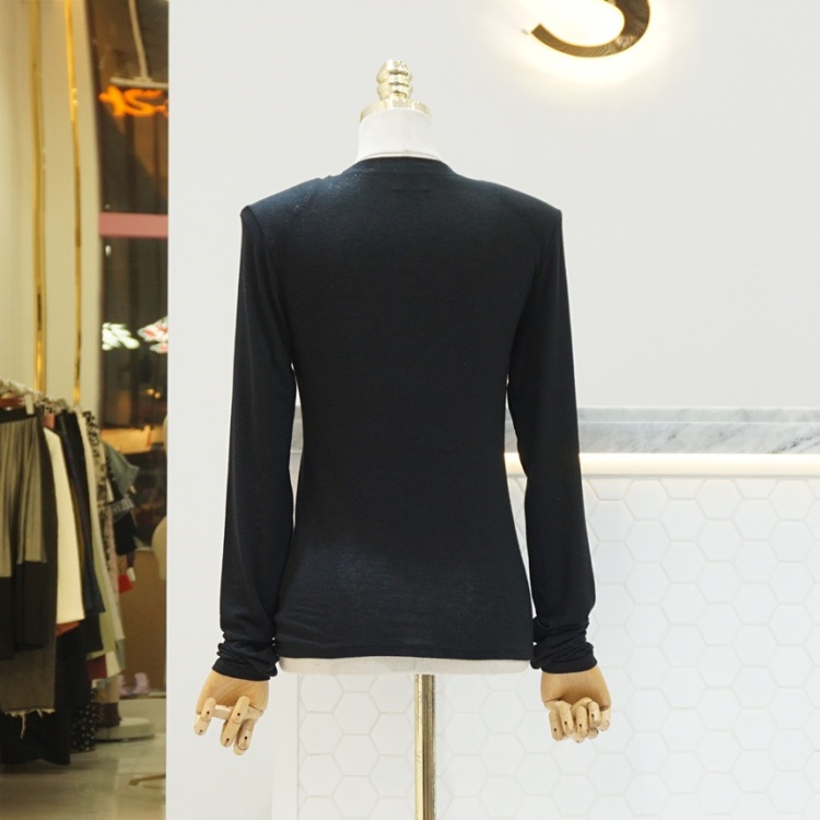 핑거 워머 체인 라운드 베이직 텐셀 울 스판 티셔츠