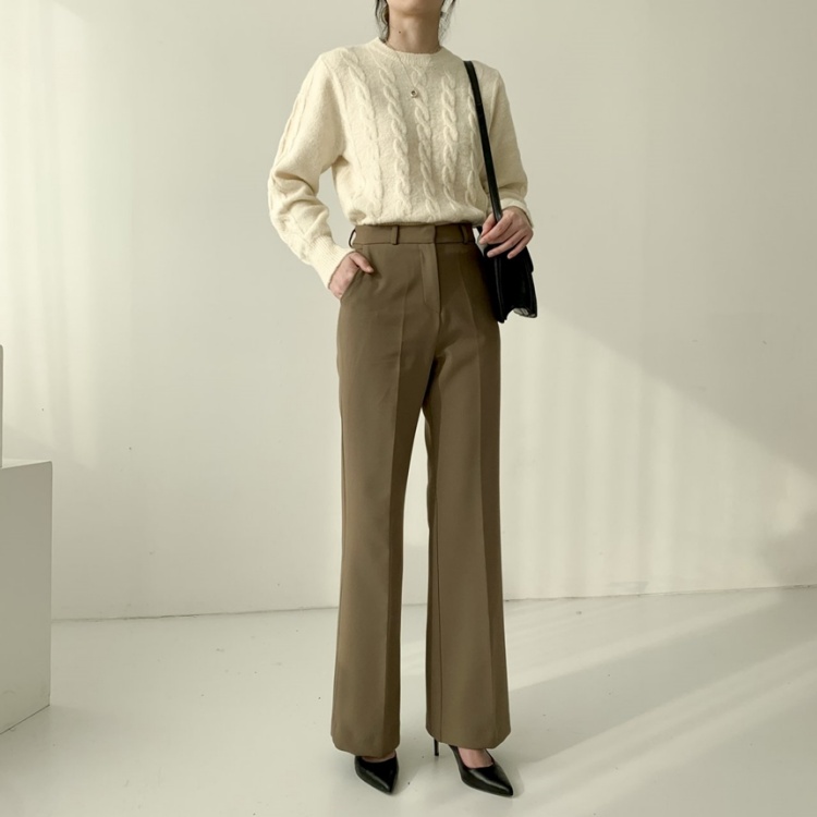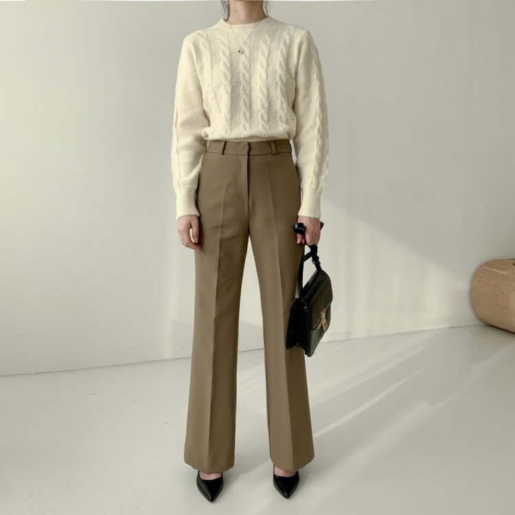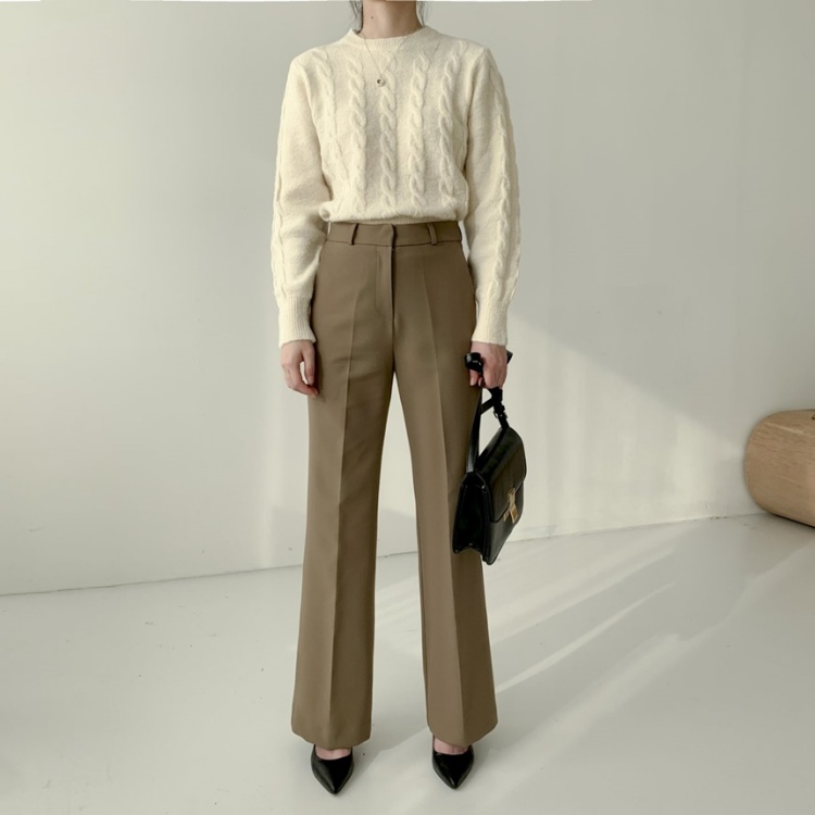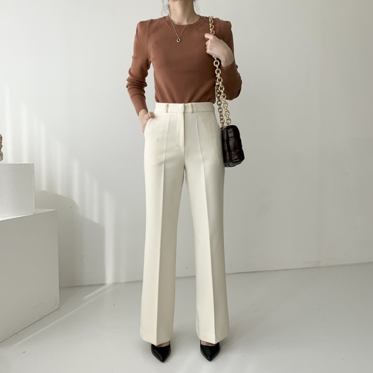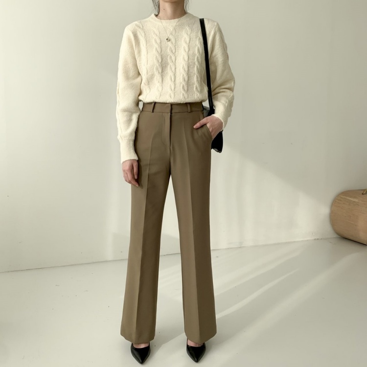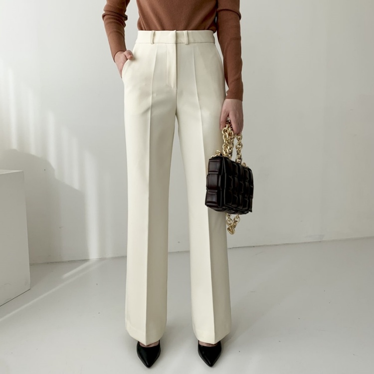 기모 하이웨스트 세미 일자 스판 와이드 슬랙스