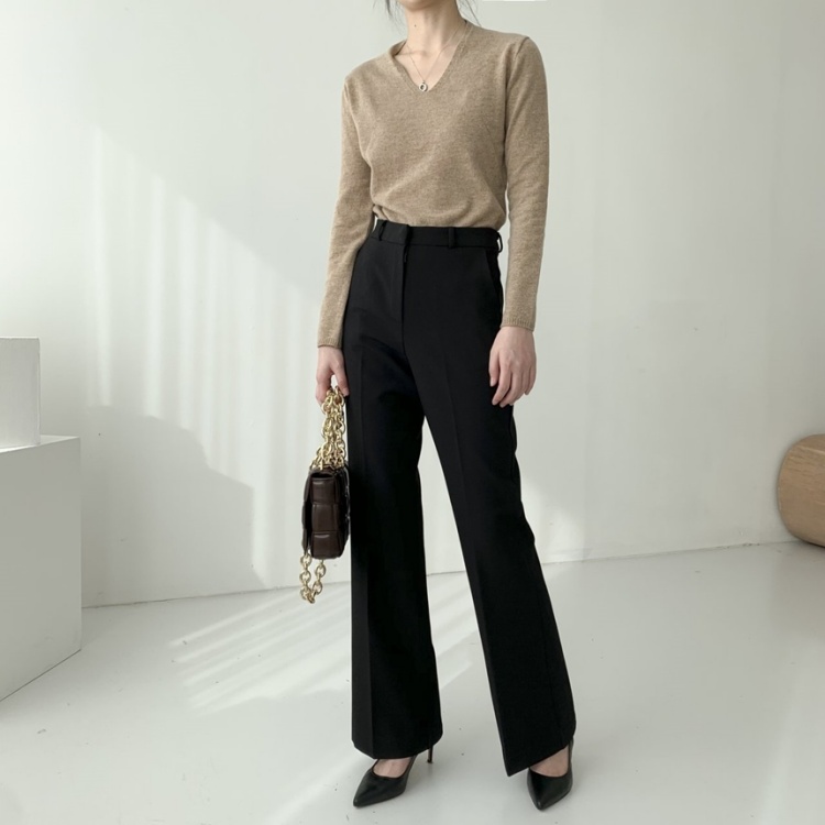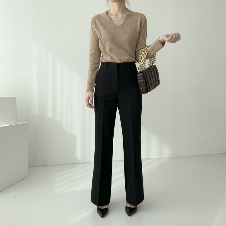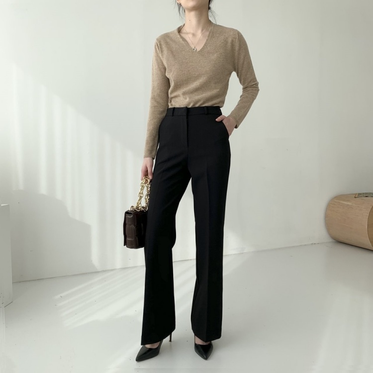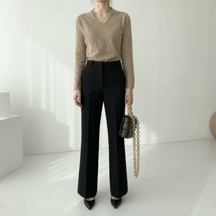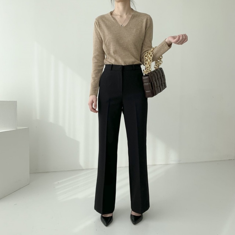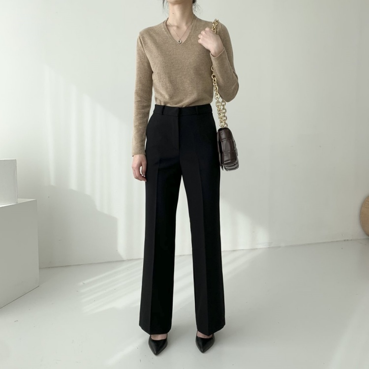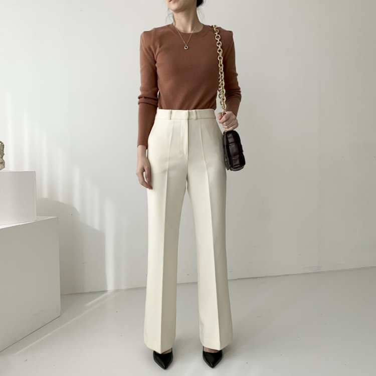 기모 하이웨스트 세미 일자 스판 와이드 슬랙스