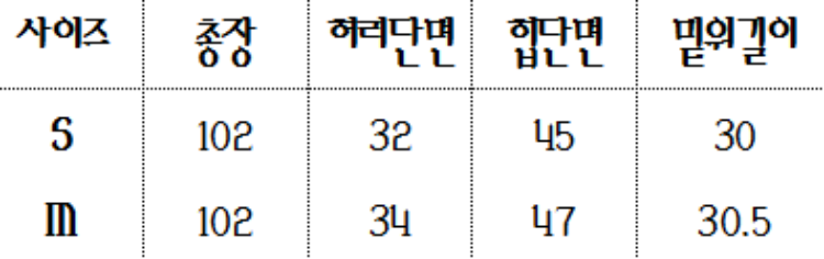 총자 102/허리단면 36/힙단면 49/밑위길이 31