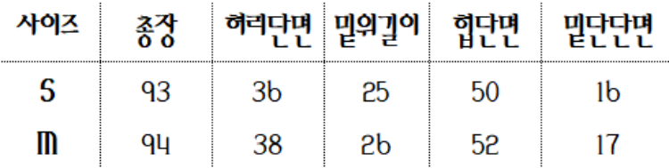 하단 사이즈 표를