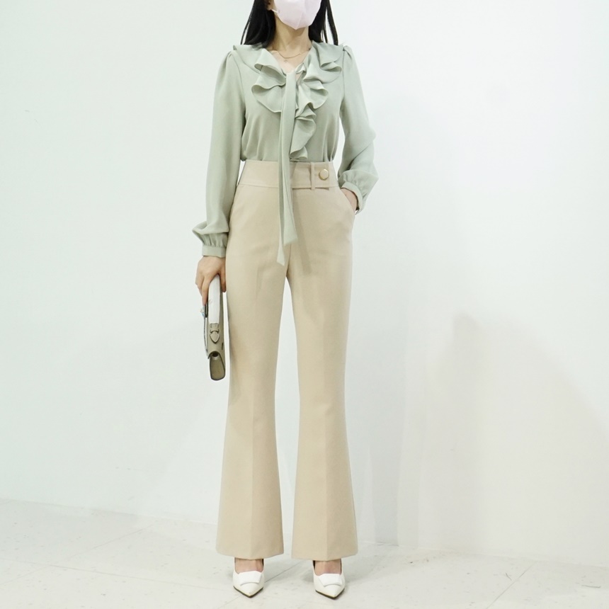[컬러추가] 골드써클 버튼 하이웨스트 부츠컷