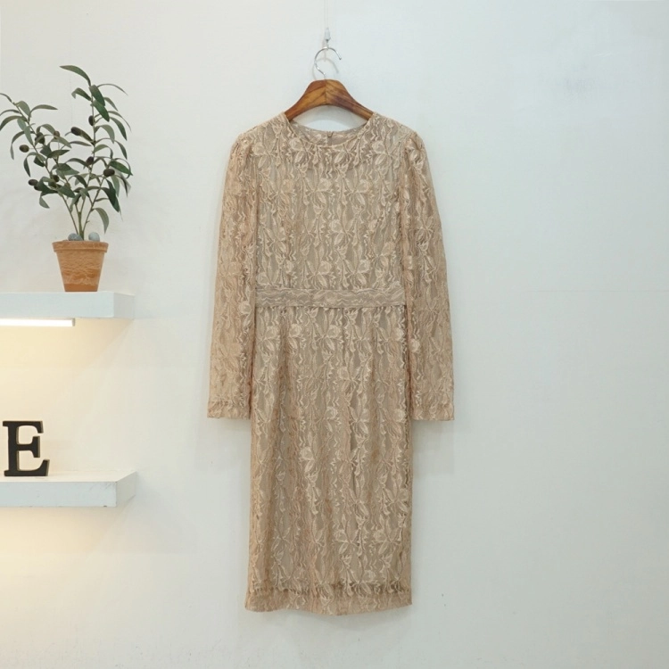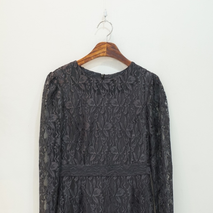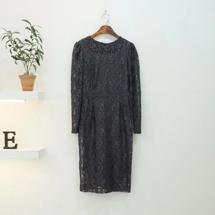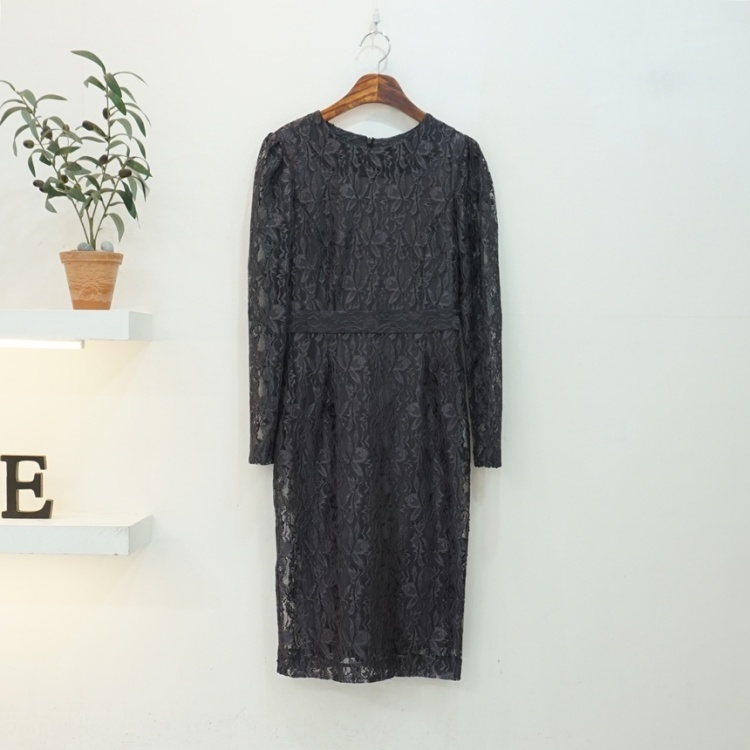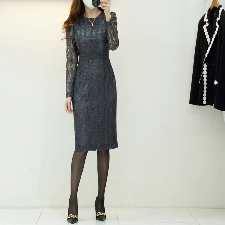소매 시스루 플라워 레이스 슬림 H라인 원피스