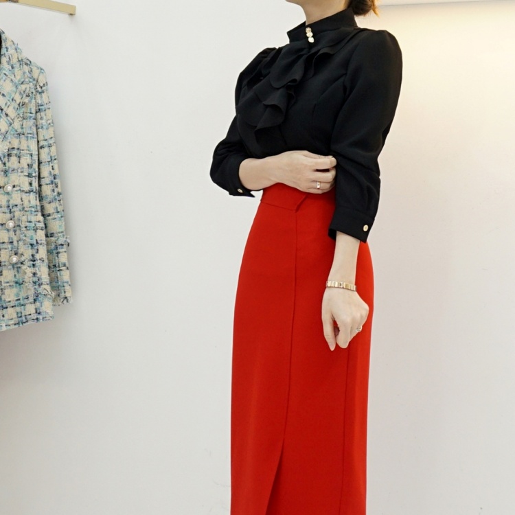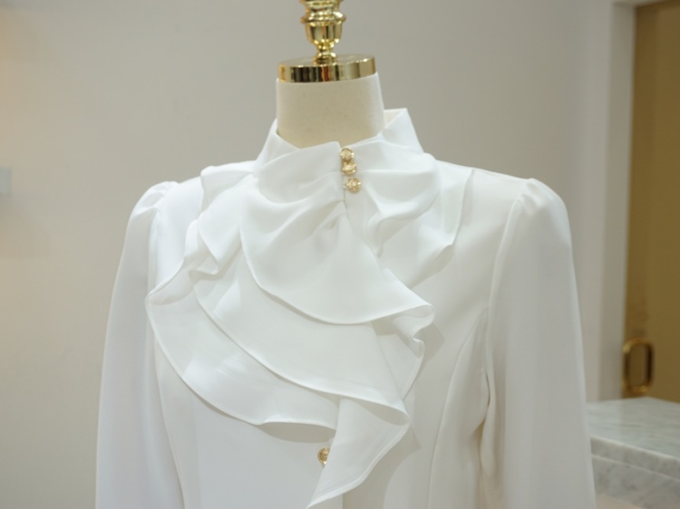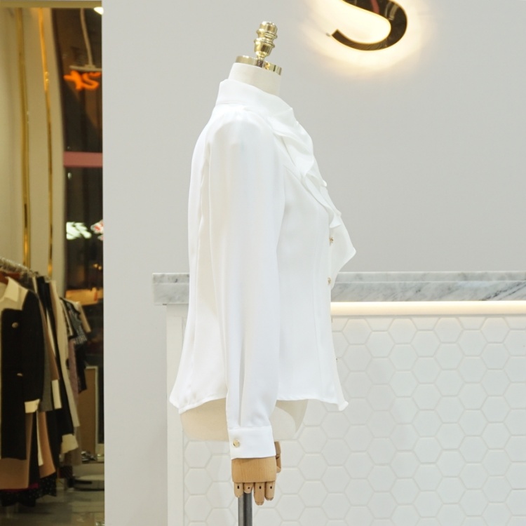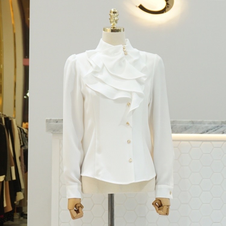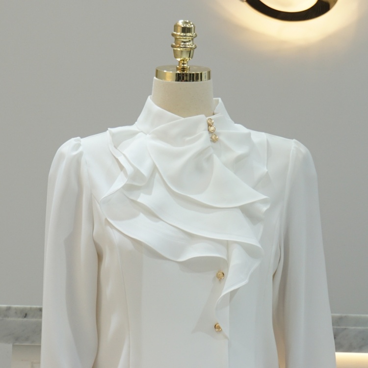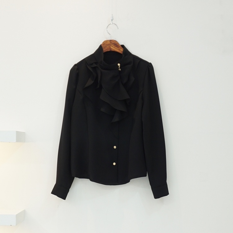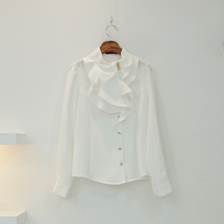 엘레강스 사선 반하이넥 프릴 쉬폰 블라우스