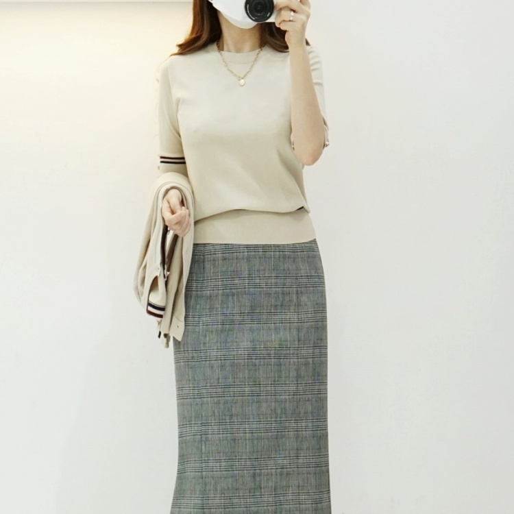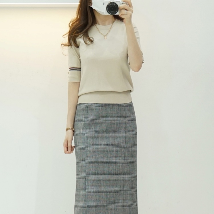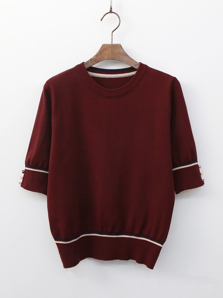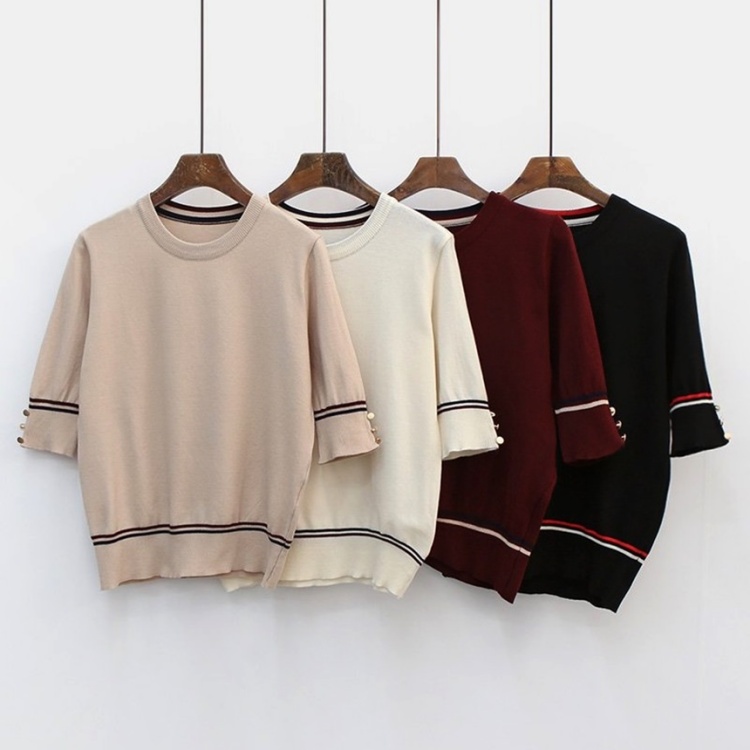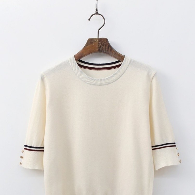 여성반팔니트 베이직 투톤 배색 라운드 니트 티셔츠