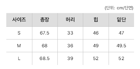 1-3cm정도의 오차범위가 있을 수 있습니다.