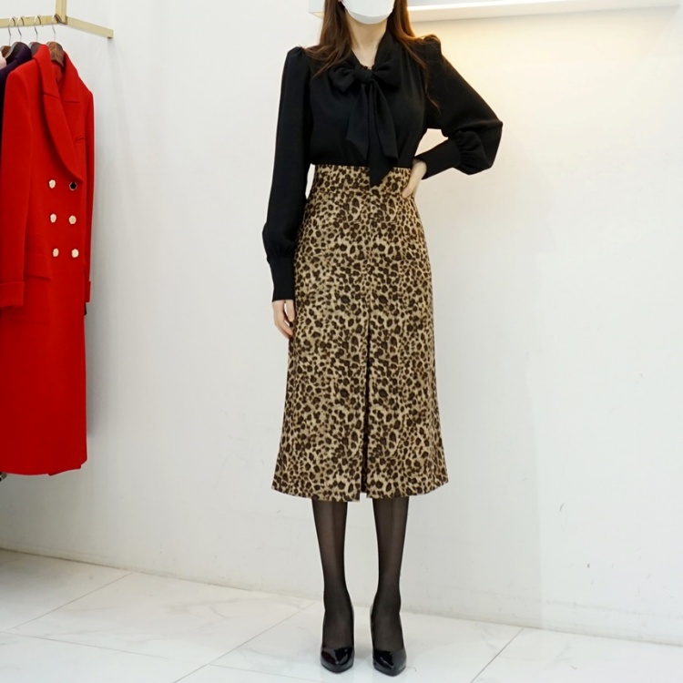 오피스룩 타이거 호피 스판 맞주름