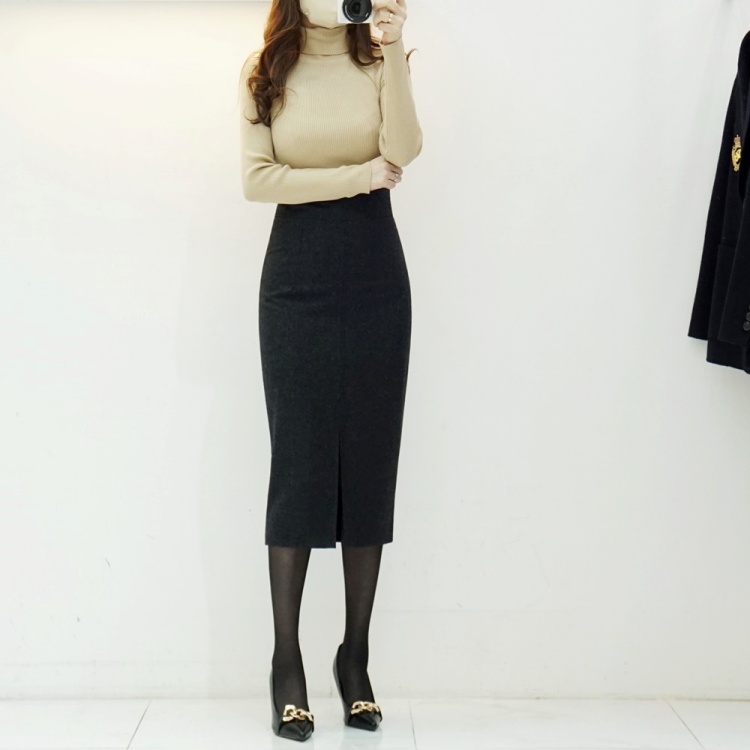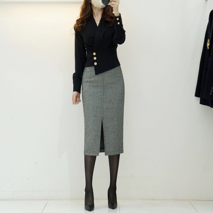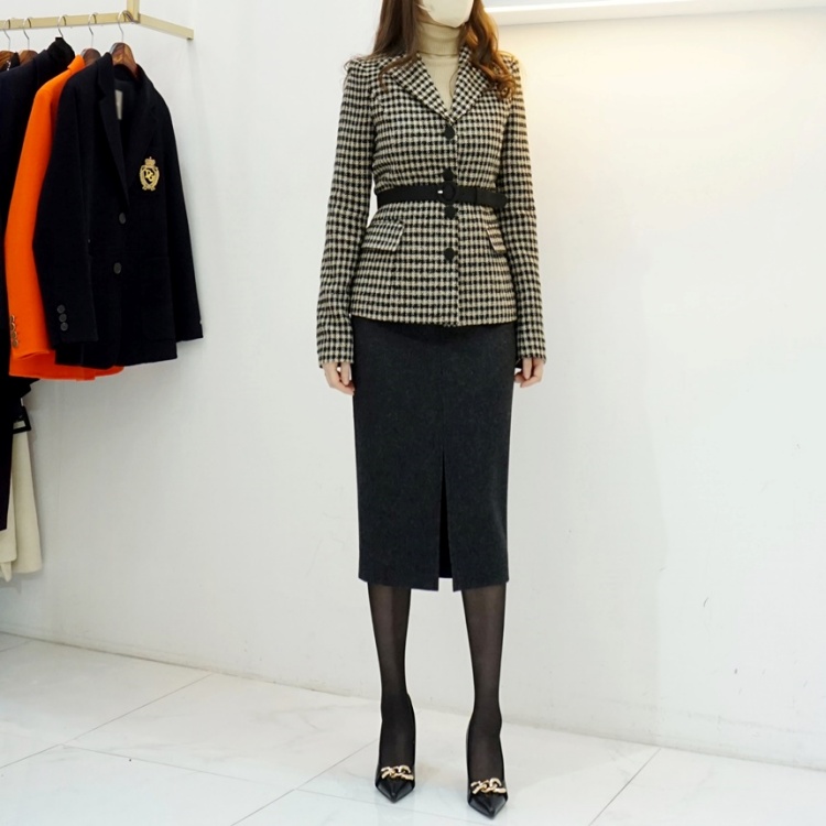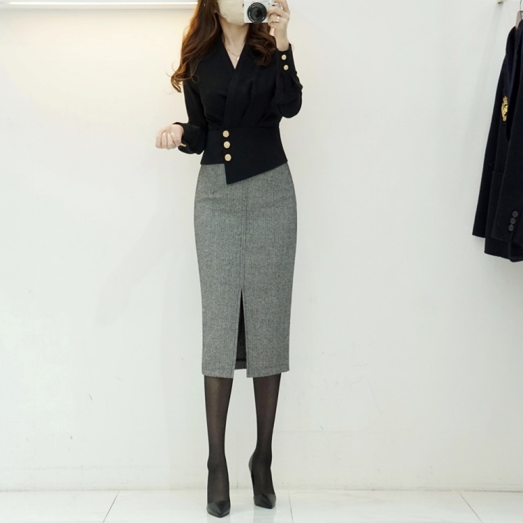 헤링본 앞트임 하이웨스트 H라인 펜슬 스커트