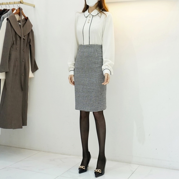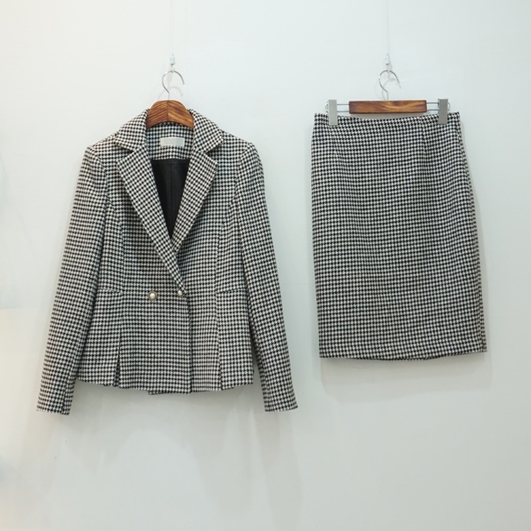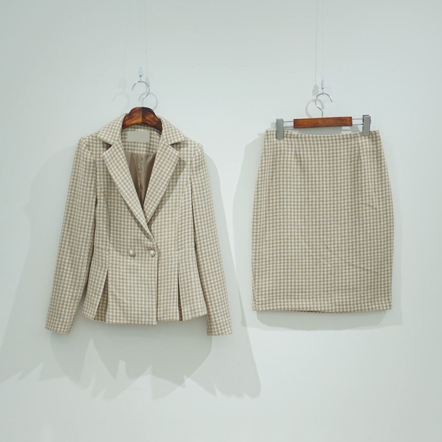 겨울 치마정장 하운드 체크 자켓 스커트 투피스