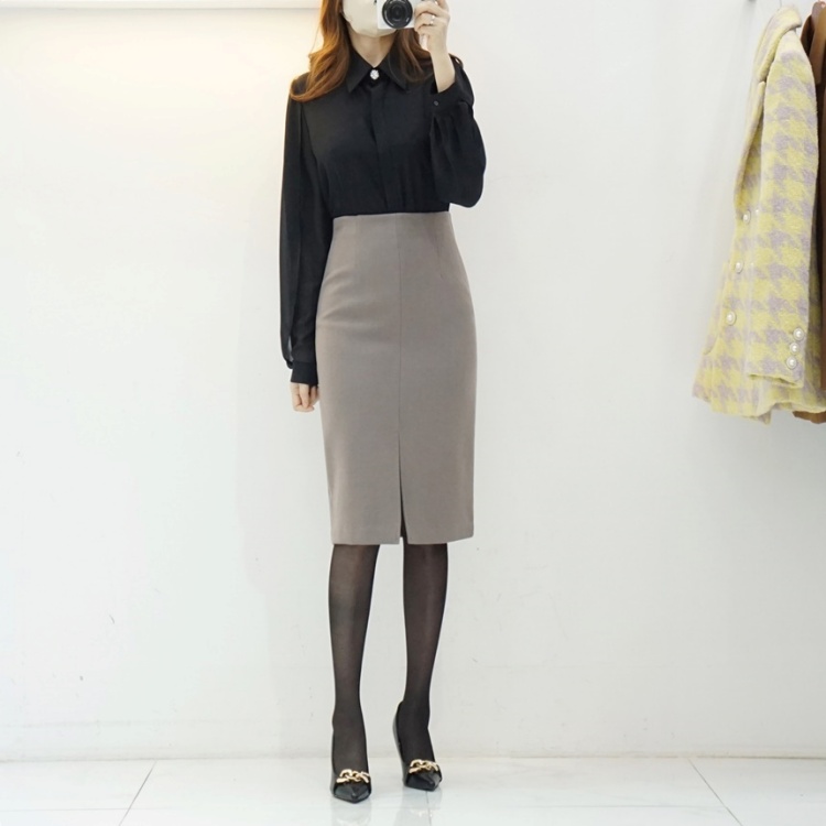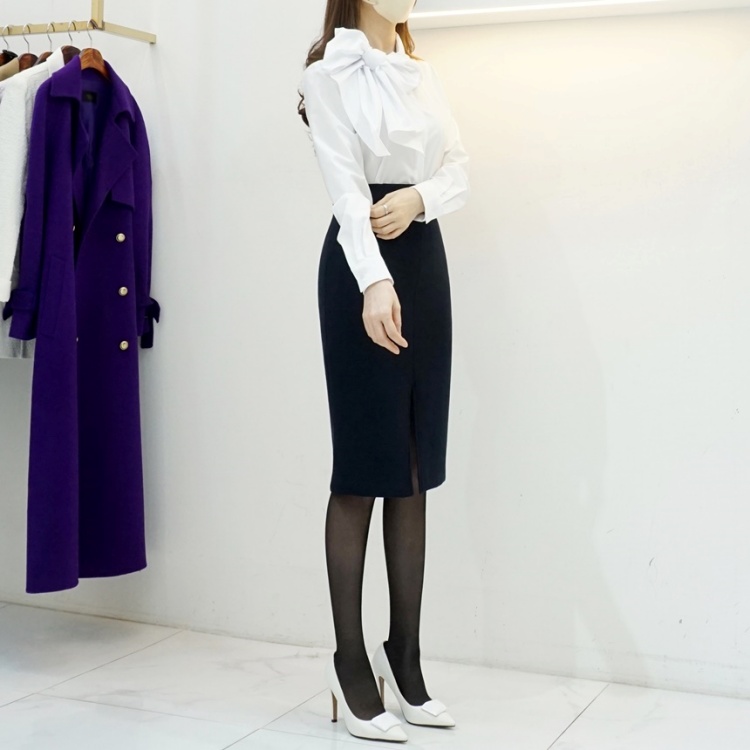 겨울 앞트임 정장치마 기모 스판 H라인 슬릿