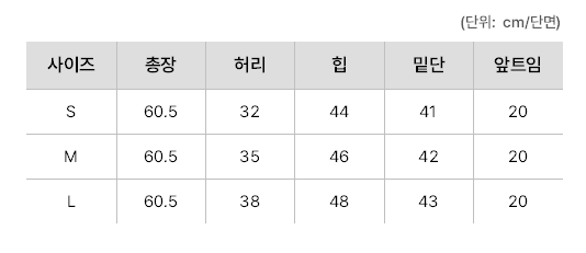 하단 사이즈 표를