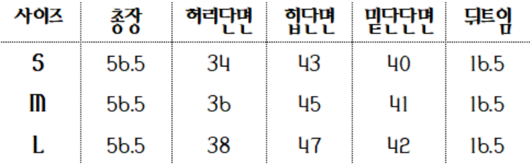 하단 사이즈 표를