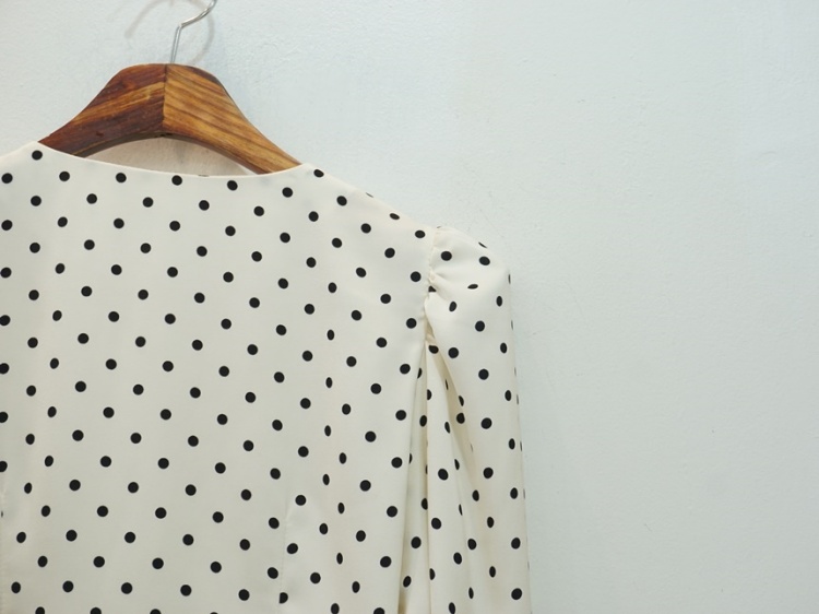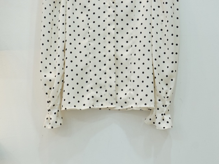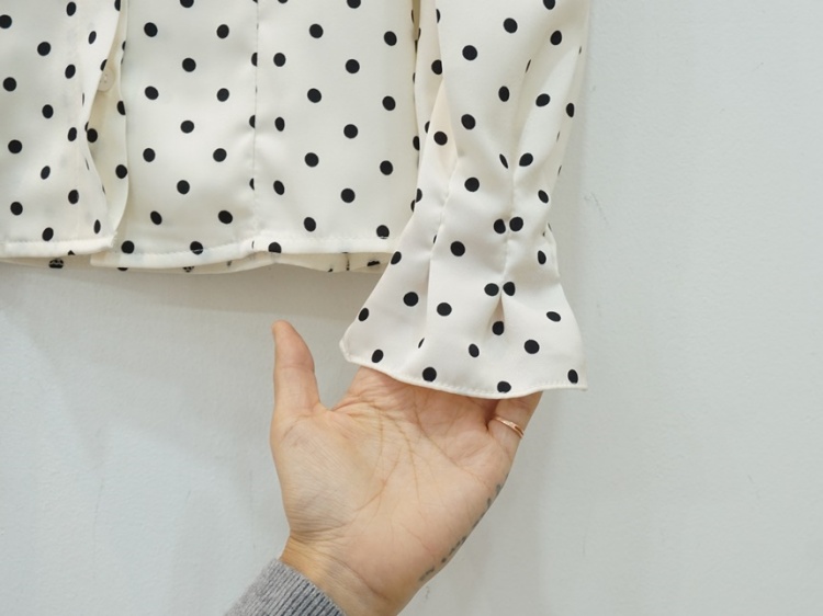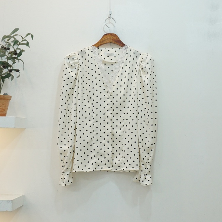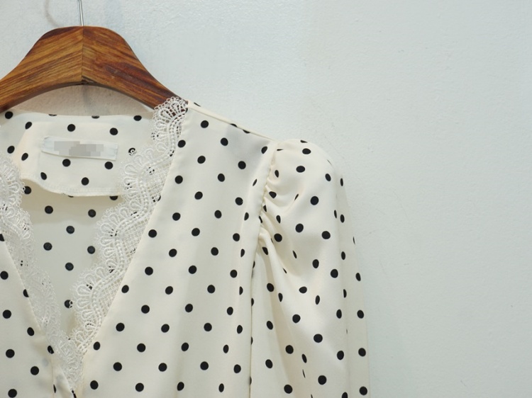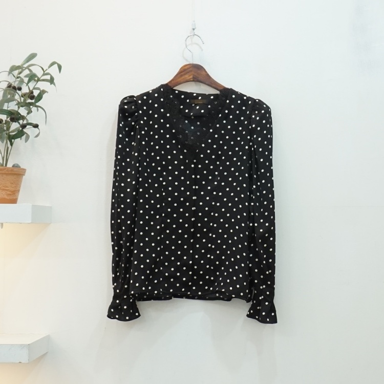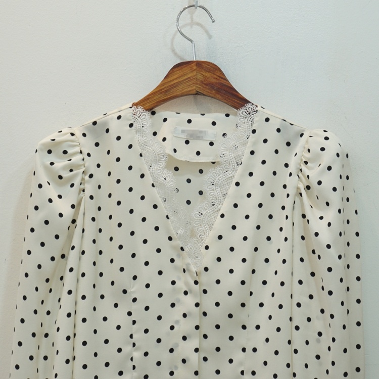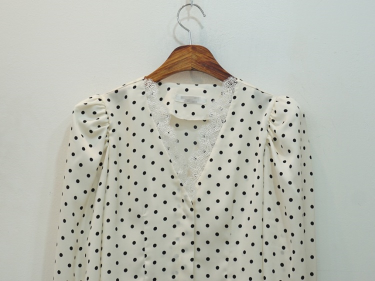 레이스 브이넥 실키 도트 땡땡이 블라우스