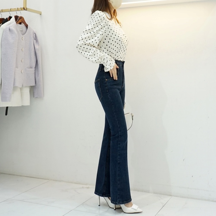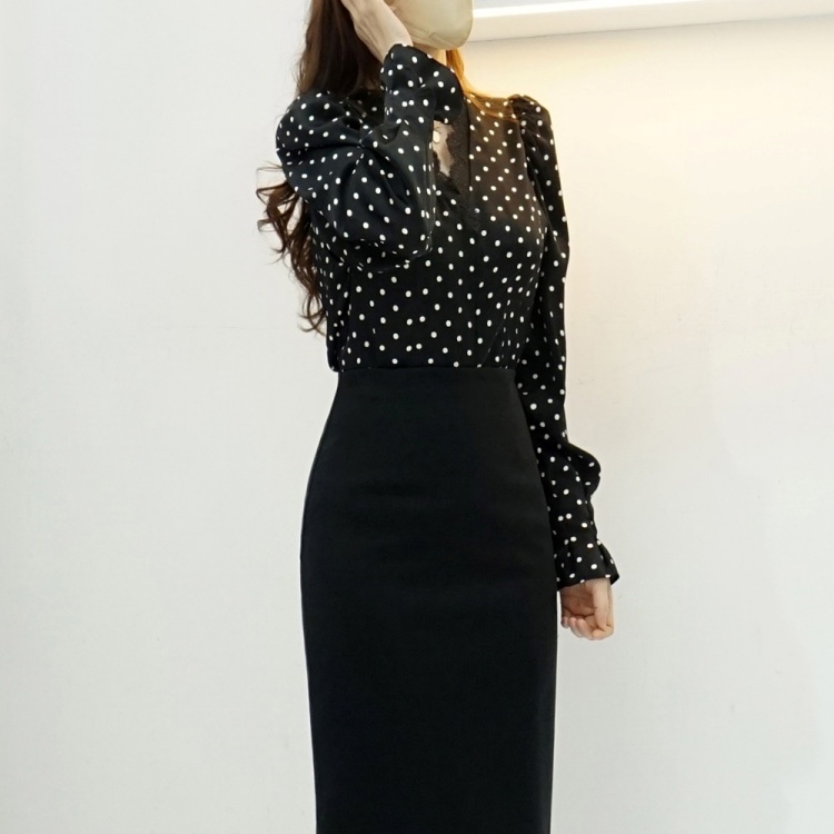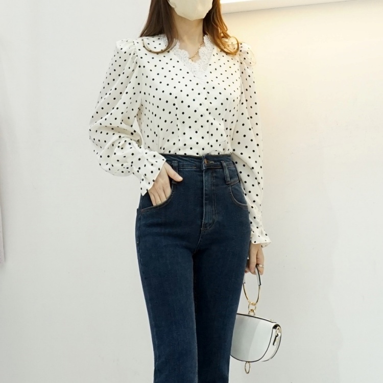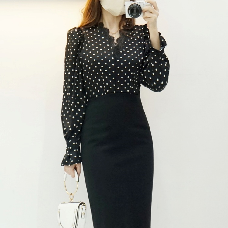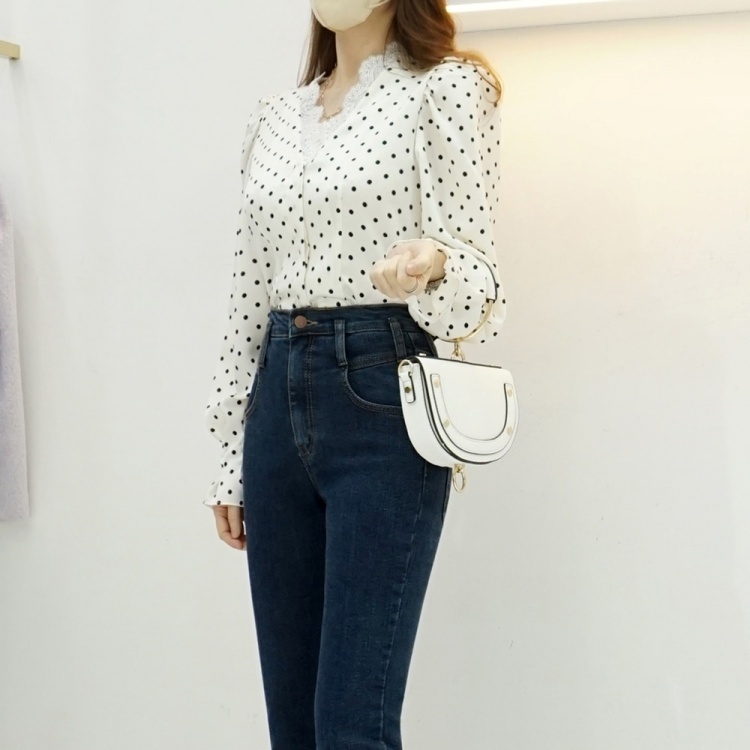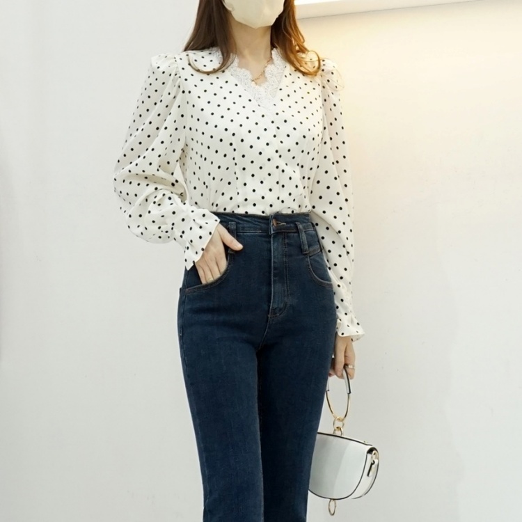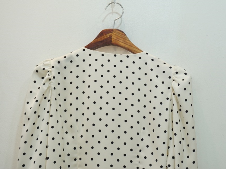 레이스 브이넥 실키 도트 땡땡이 블라우스