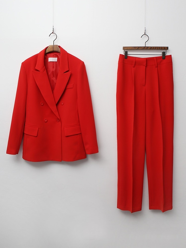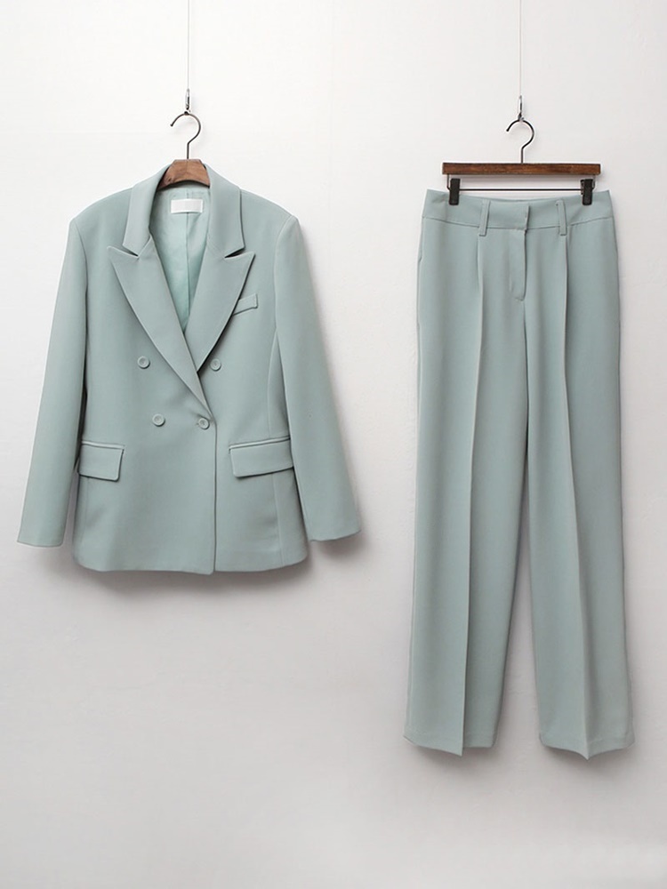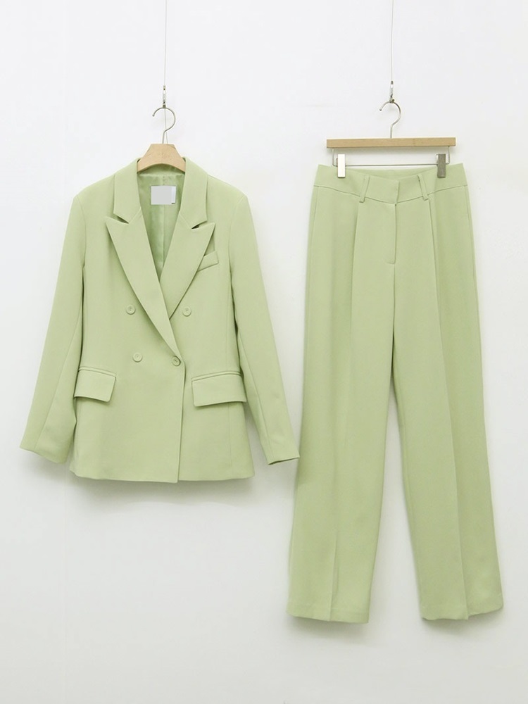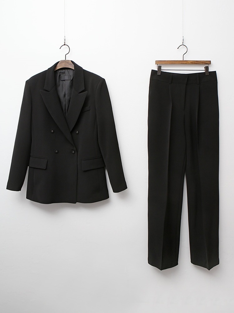 베이직 루즈핏 더블 자켓 와이드 슬랙스 투피스