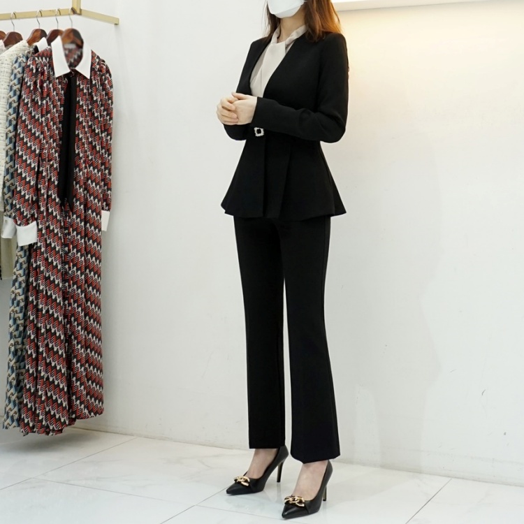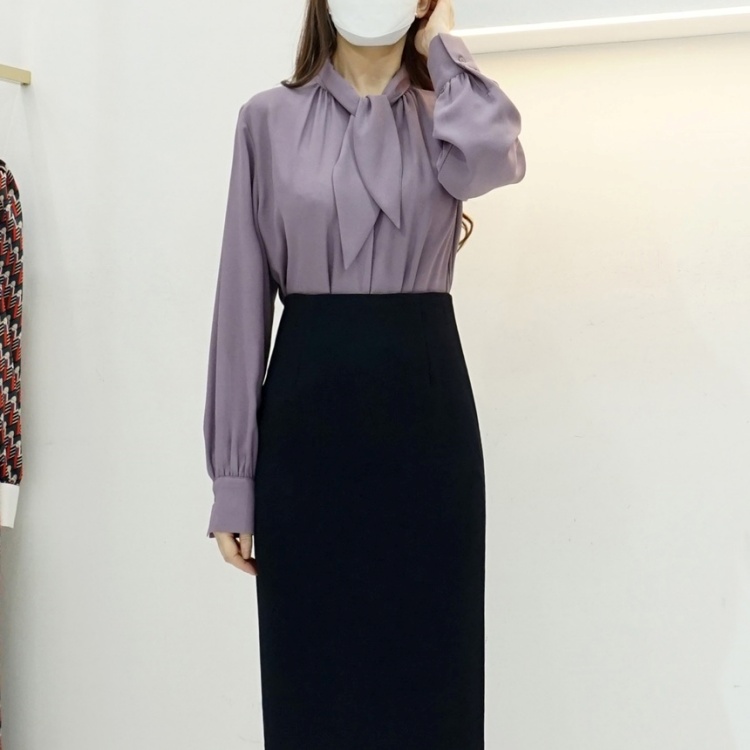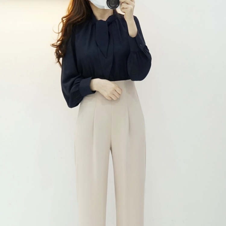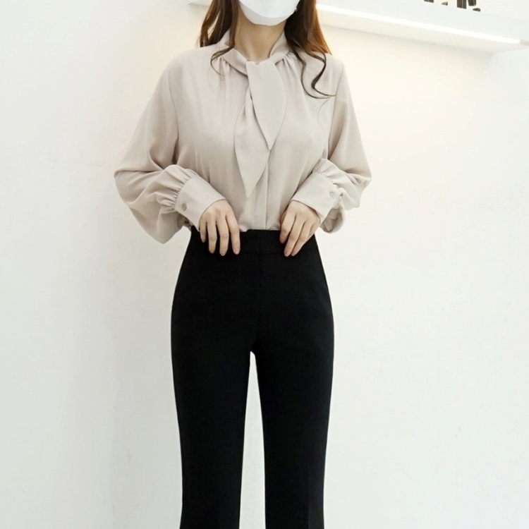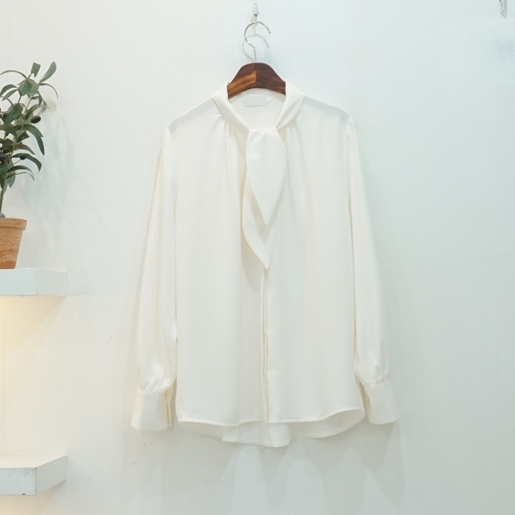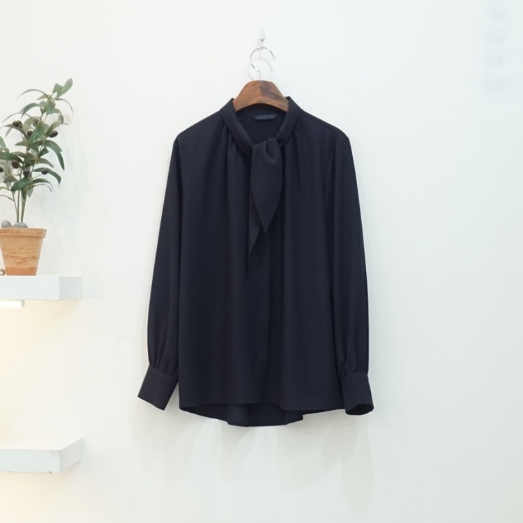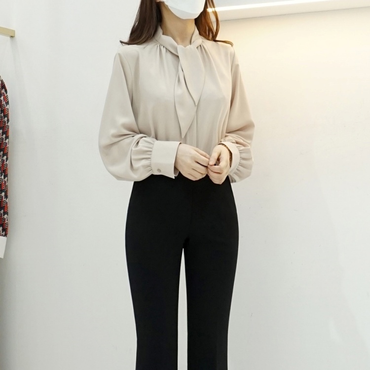 단정한 숏 타이 여자 긴팔 쉬폰 블라우스 데일리