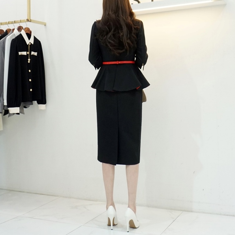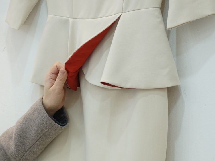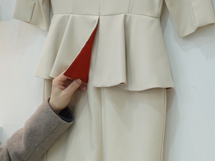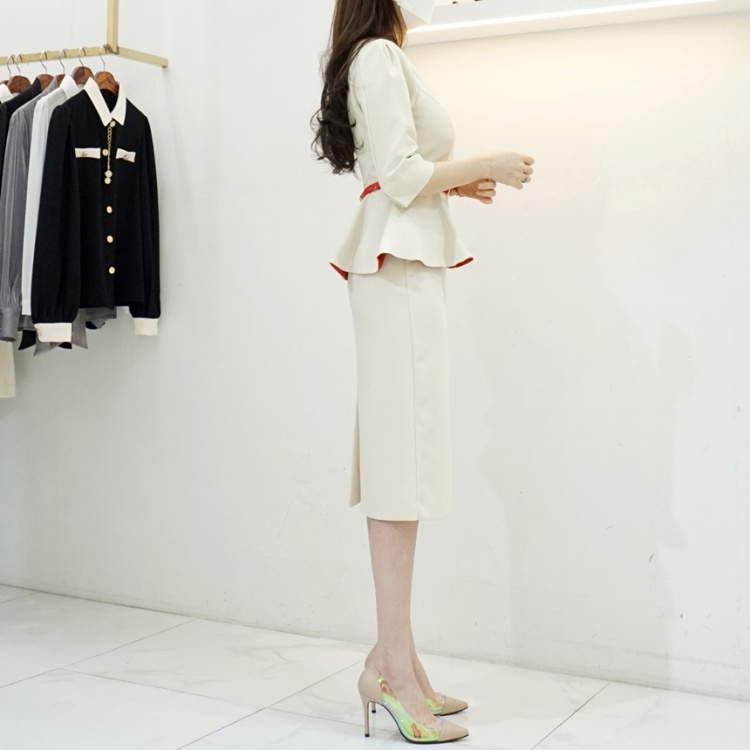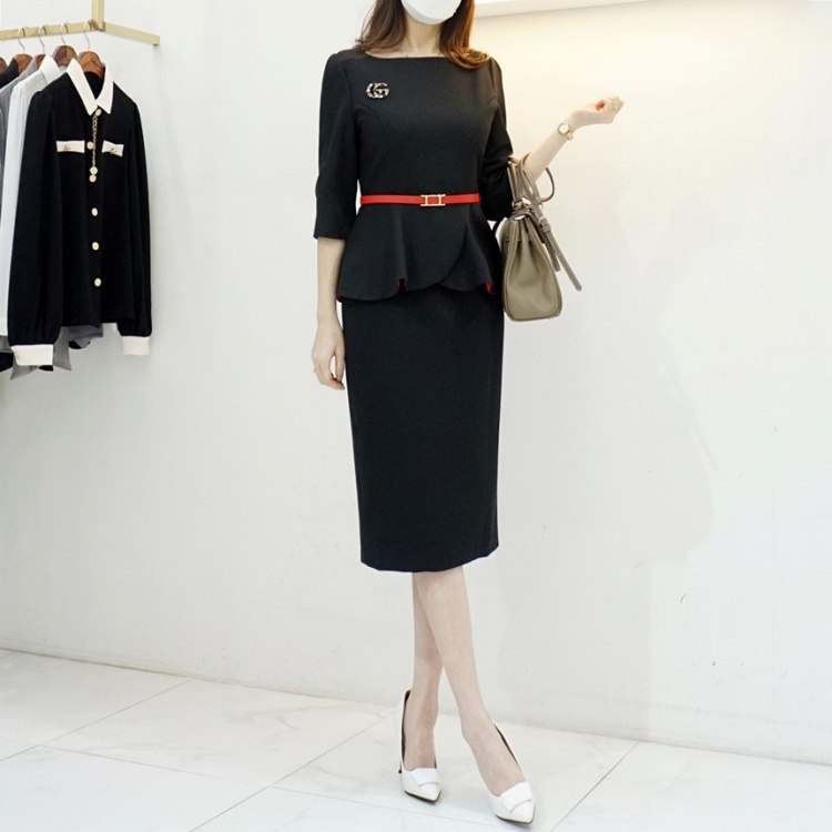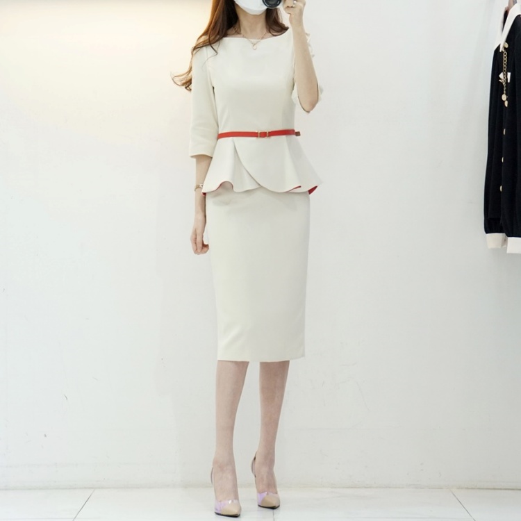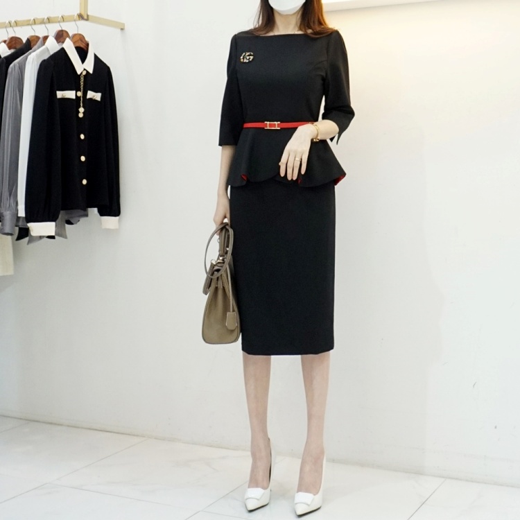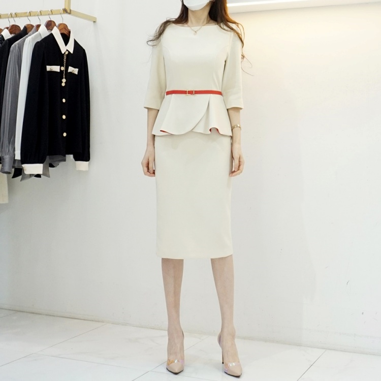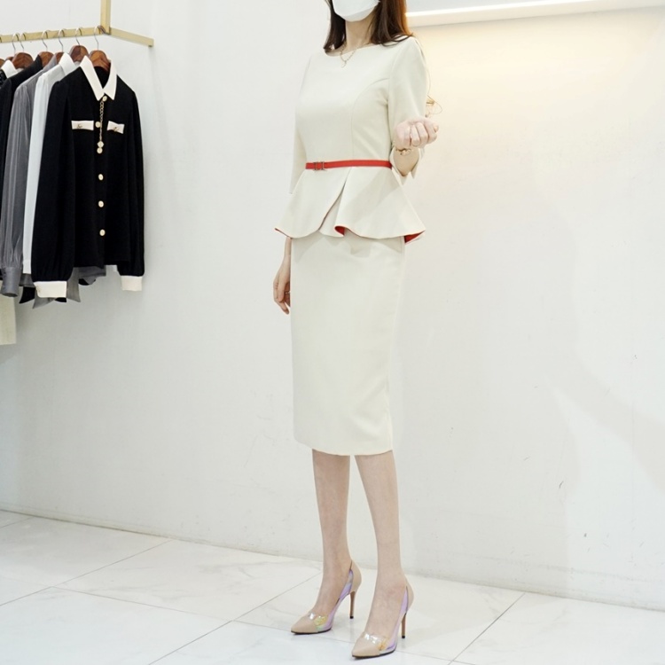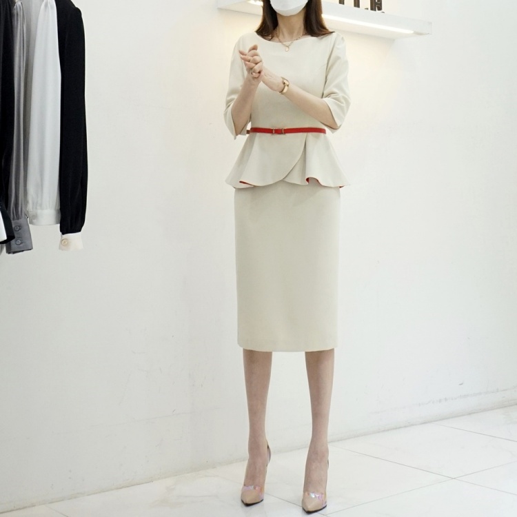 살짝 높게 잡힌 허리에 페플럼이 달려 있어