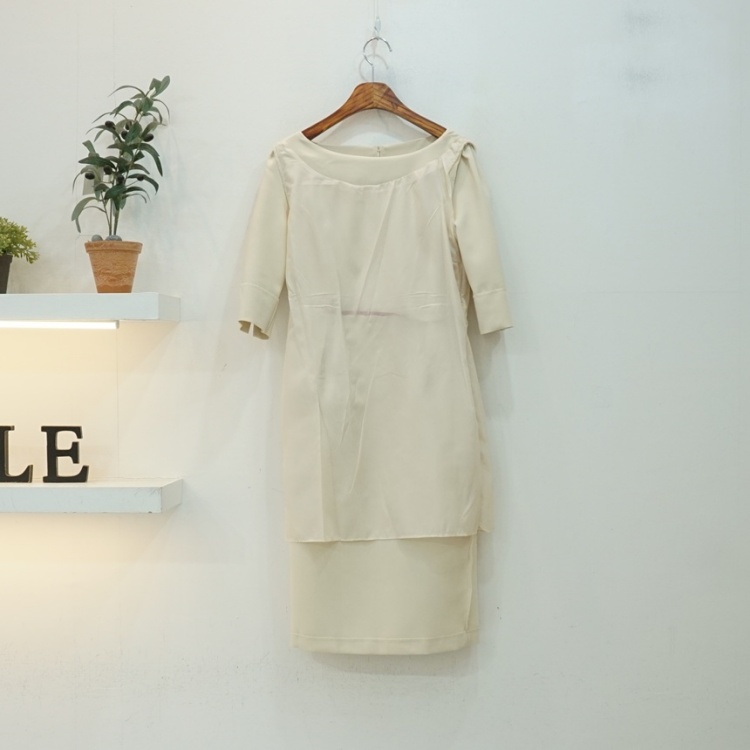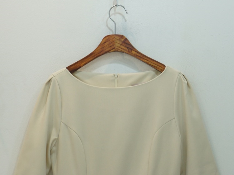 히든 배색 보트넥 페플럼 7부 H라인 스판 쉬폰