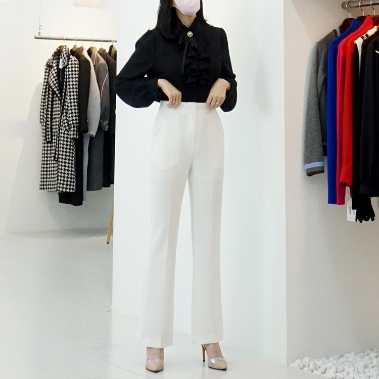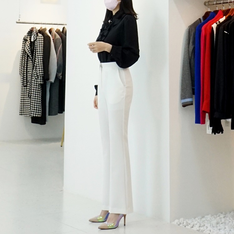 베이직 스판 매끈한 세미 부츠컷 슬랙스