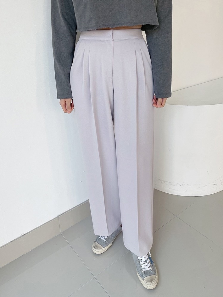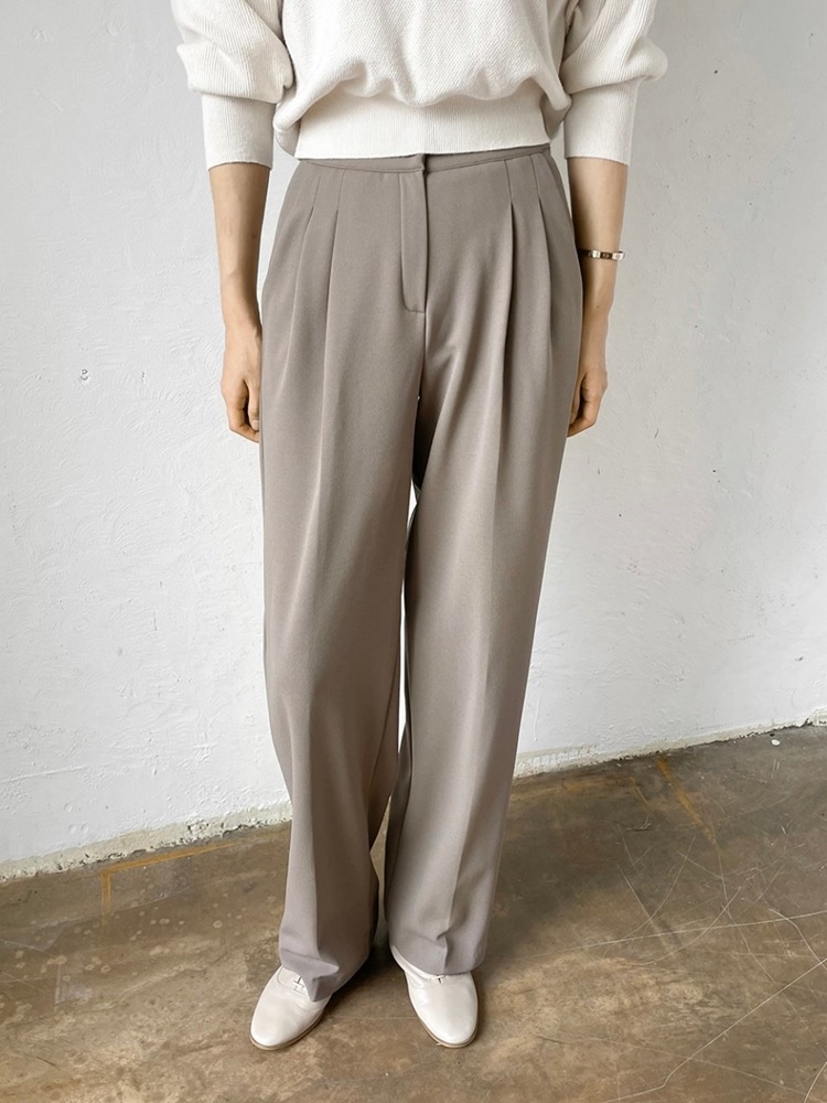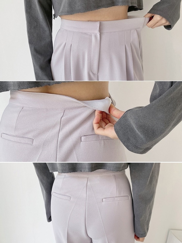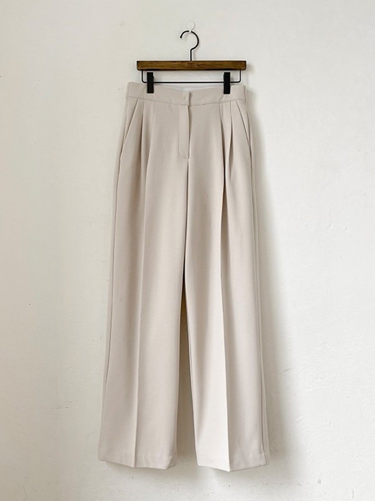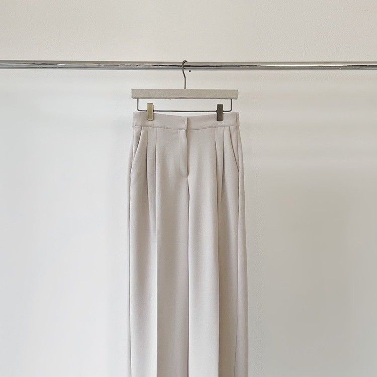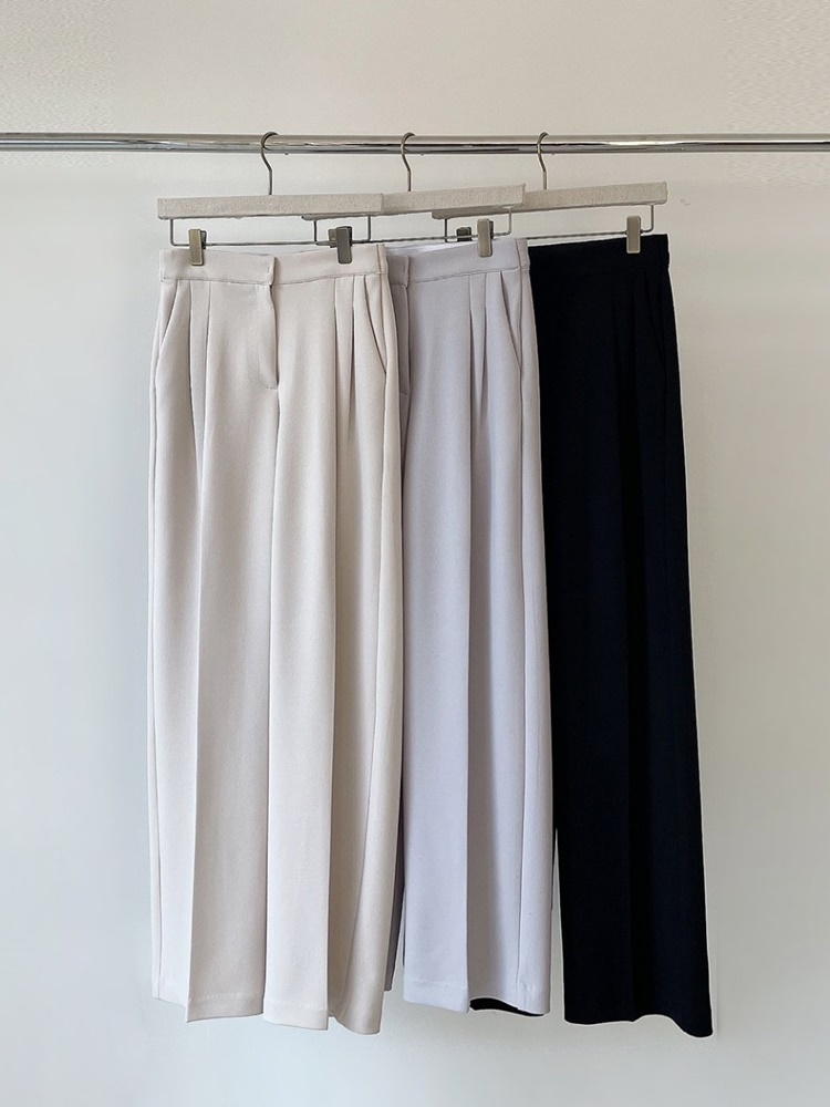 슬랙스 앞 쪽 더블 핀턱을 잡아주어