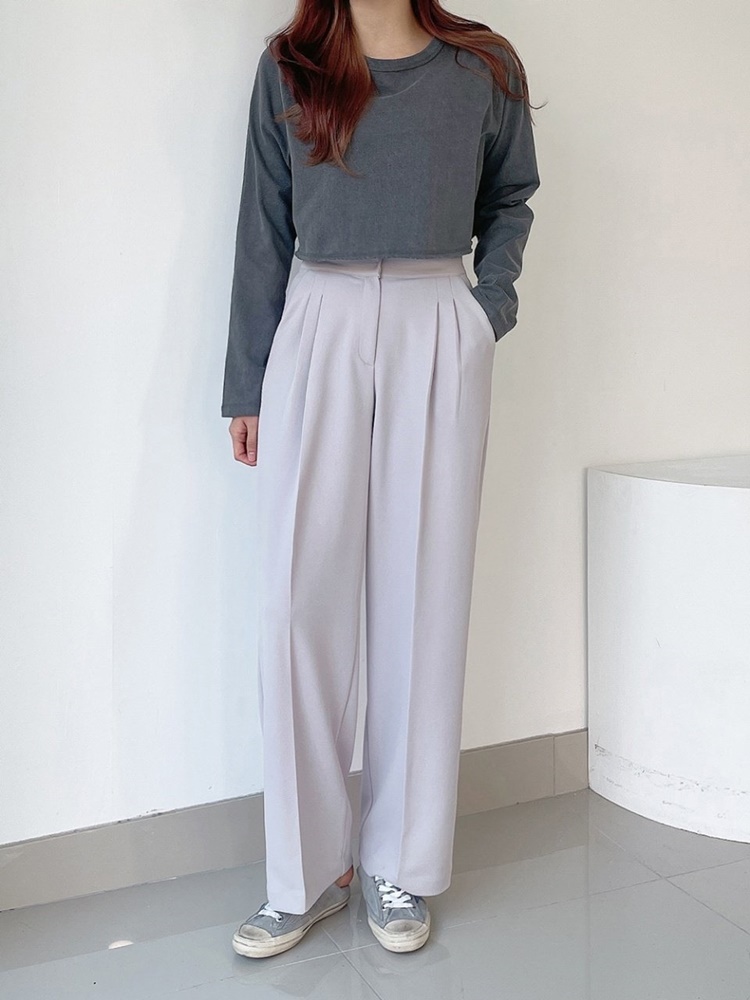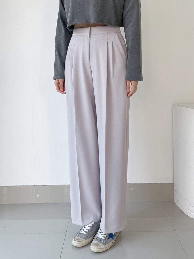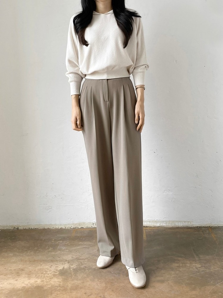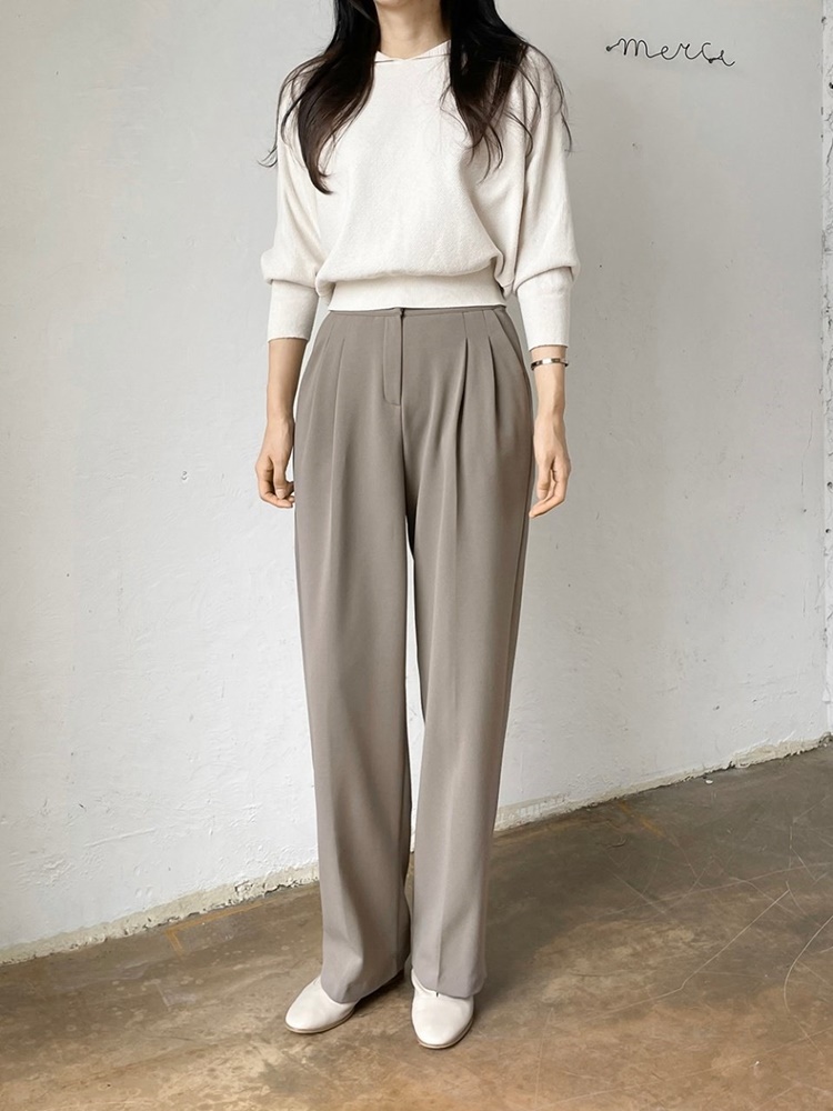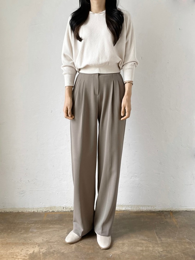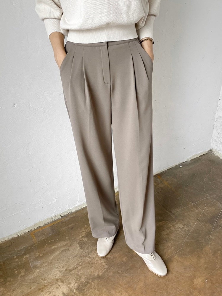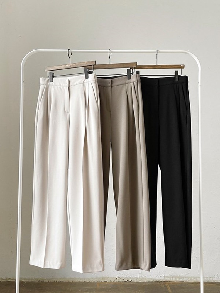슬랙스 앞 쪽 더블 핀턱을 잡아주어