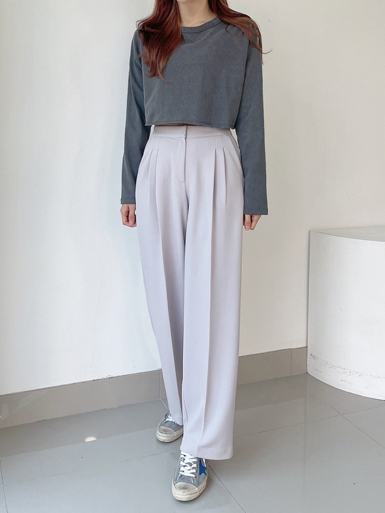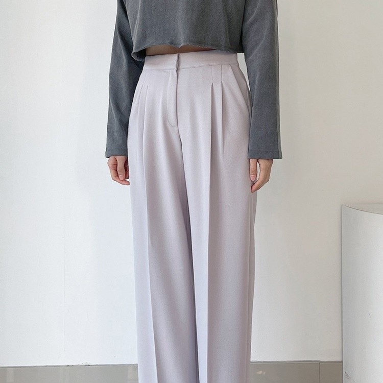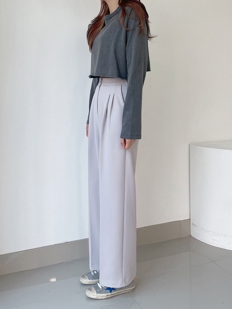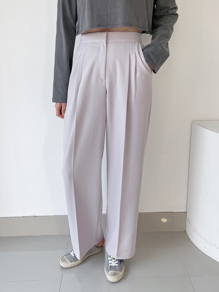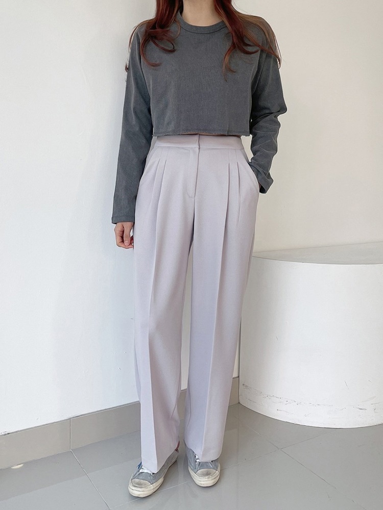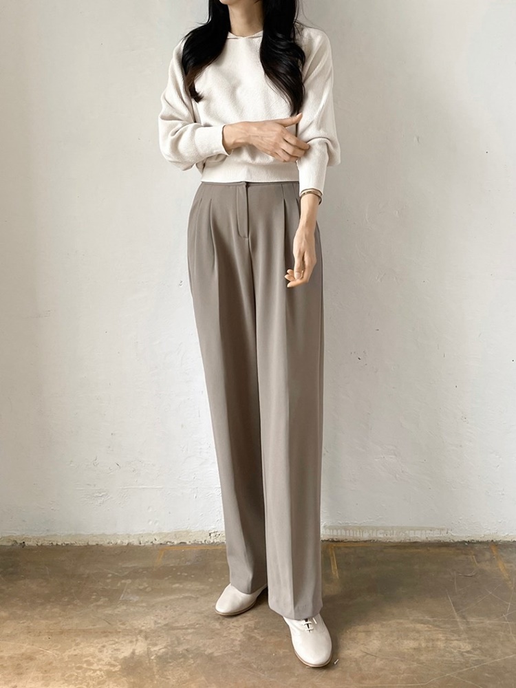 슬랙스 앞 쪽 더블 핀턱을 잡아주어