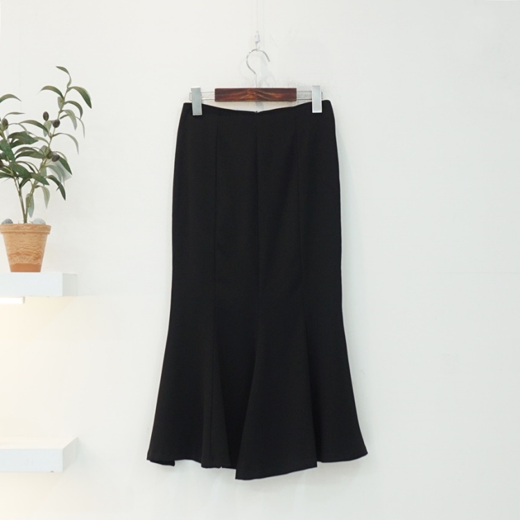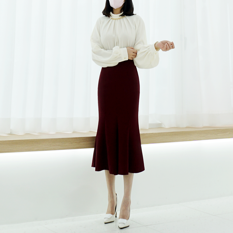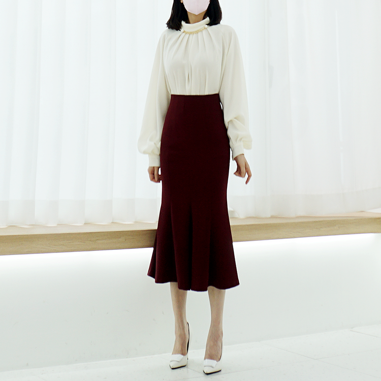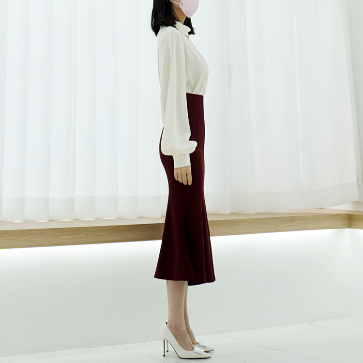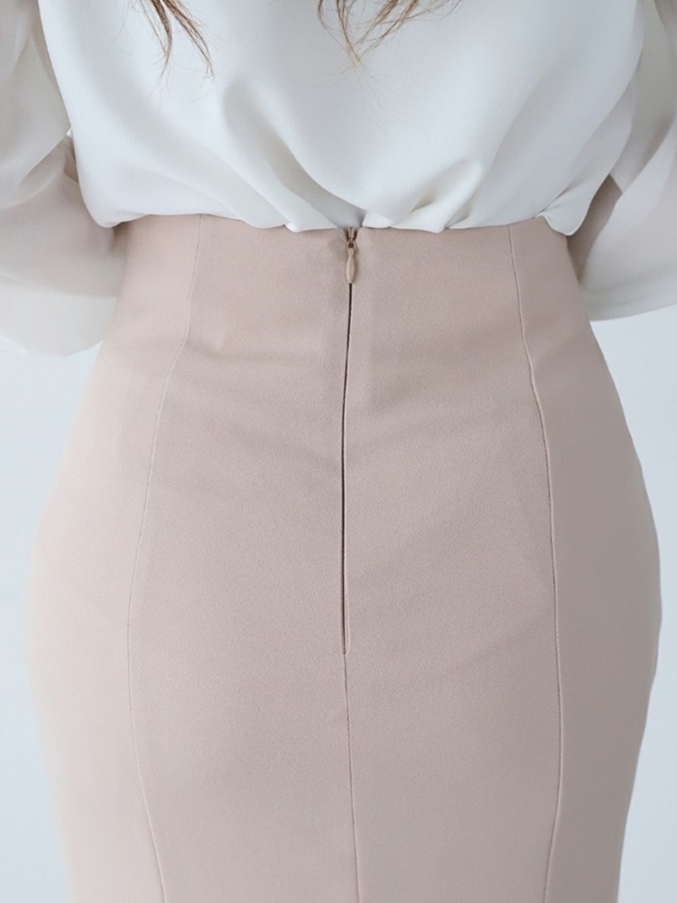 슬림핏 절개 밑단 머메이드 롱 스커트