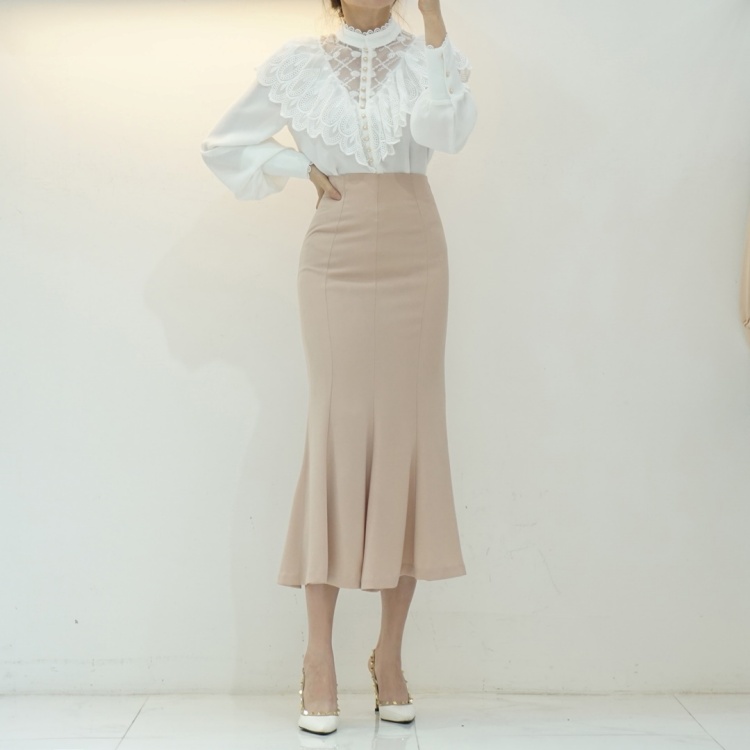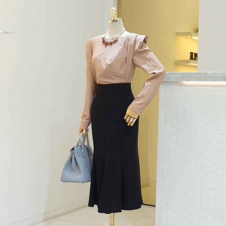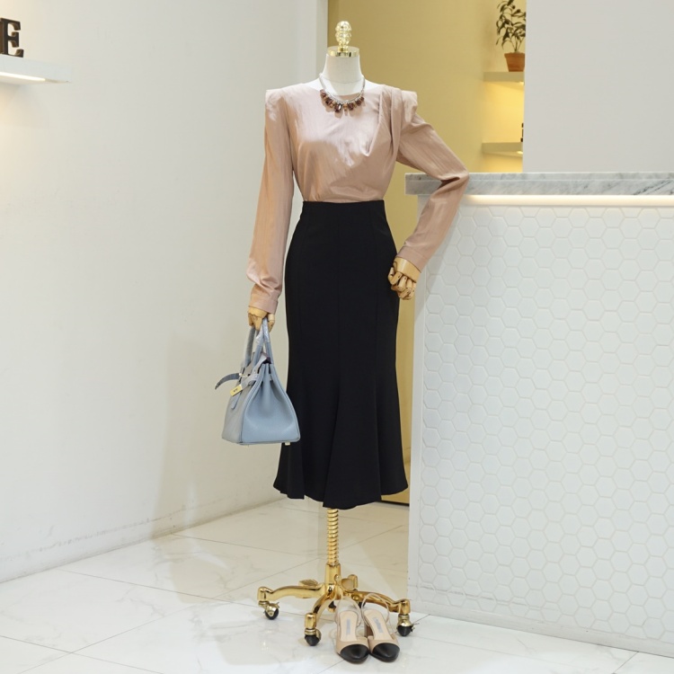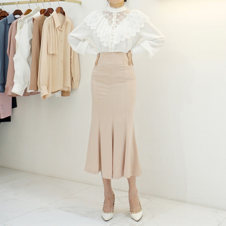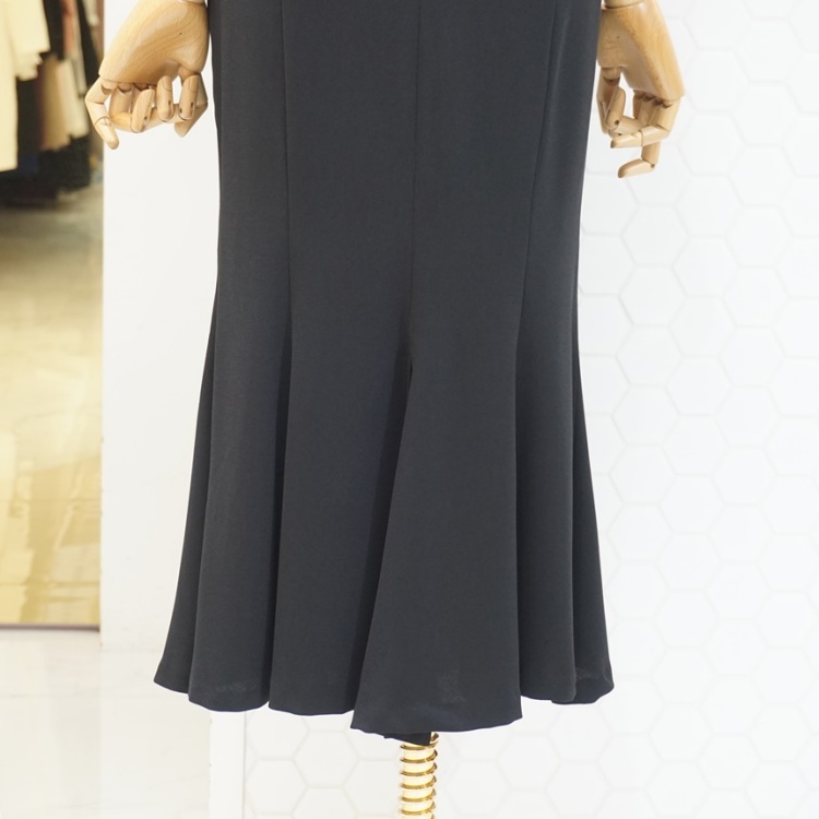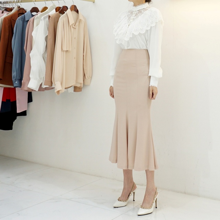 슬림핏 절개 밑단 머메이드 롱 스커트