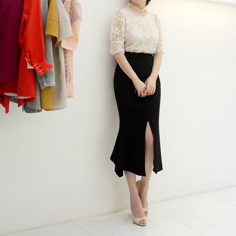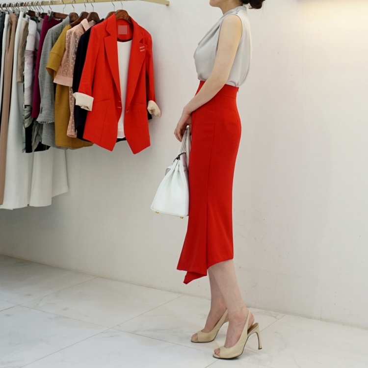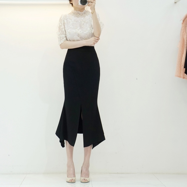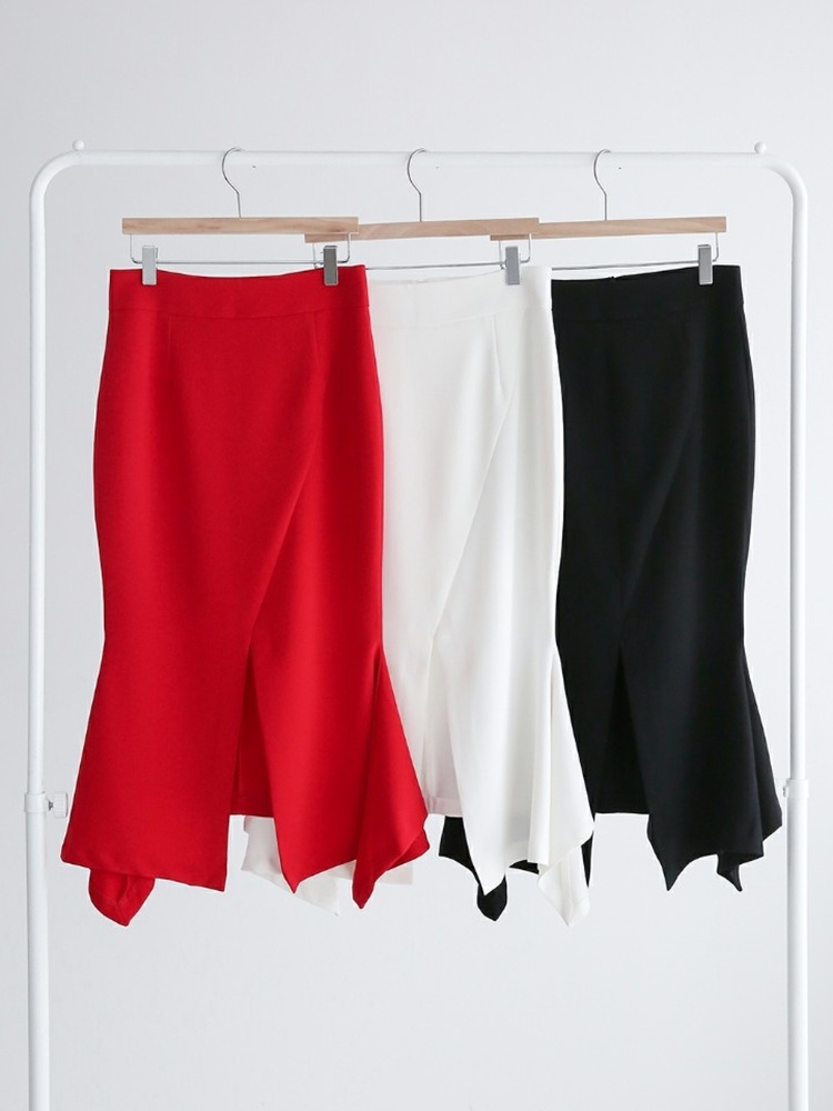 언발 머메이드 하이웨스트 앞 슬릿 스커트