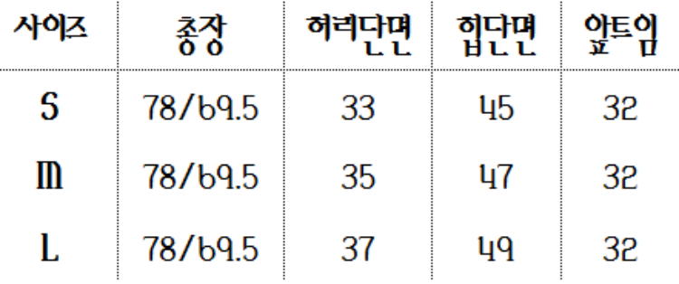 하단 사이즈 표를