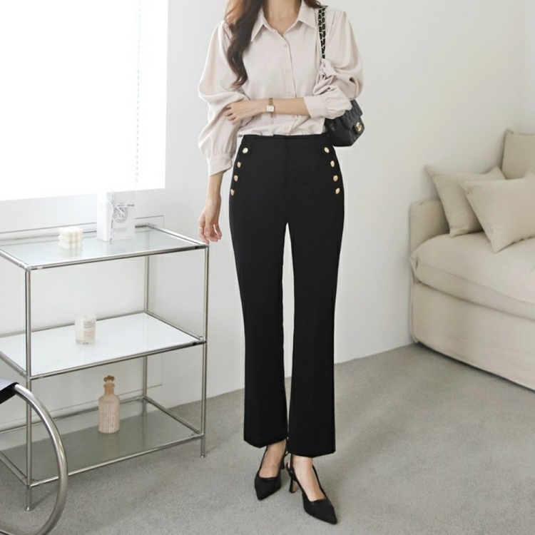 봄 가을 금장버튼 쫀쫀 스판 부츠컷 슬랙스 팬츠