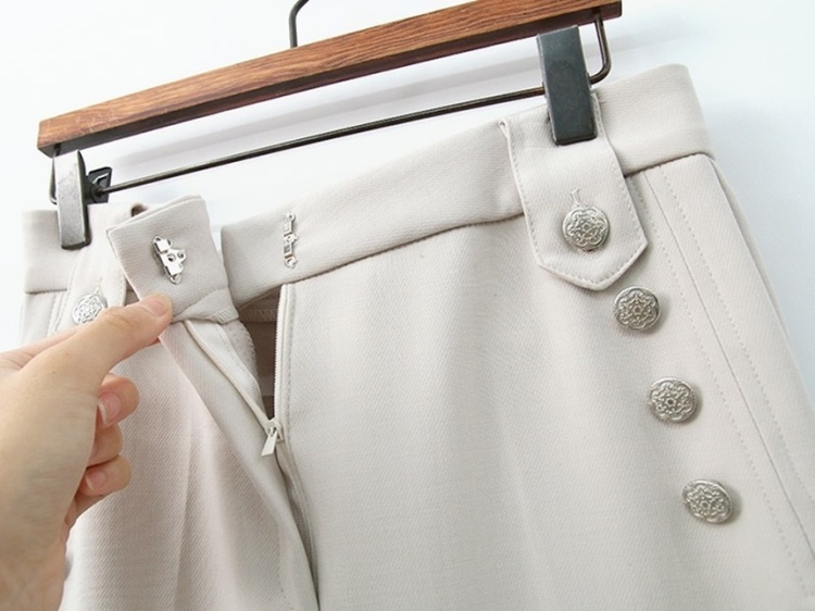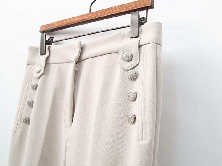 양쪽 포켓선 금장 버튼이 고급스럽게 포인트하여