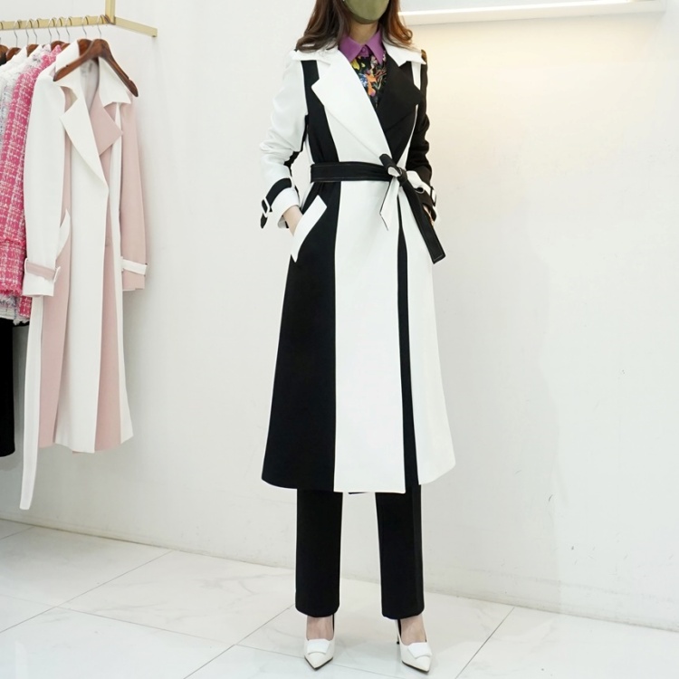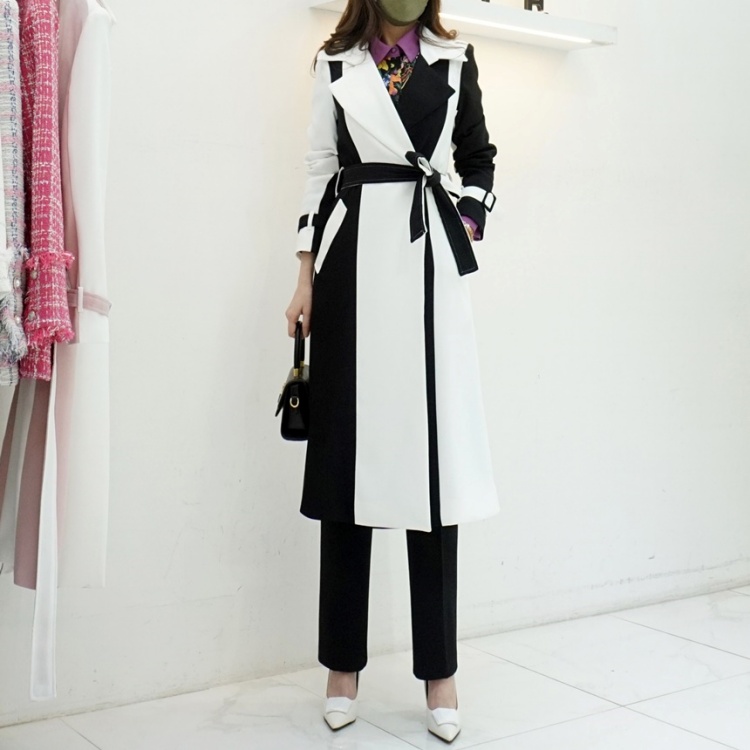 후크 여밈 버튼 디자인으로 포멀한 느낌이며