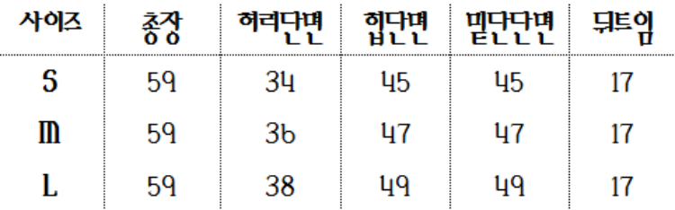 하단 사이즈 표를
