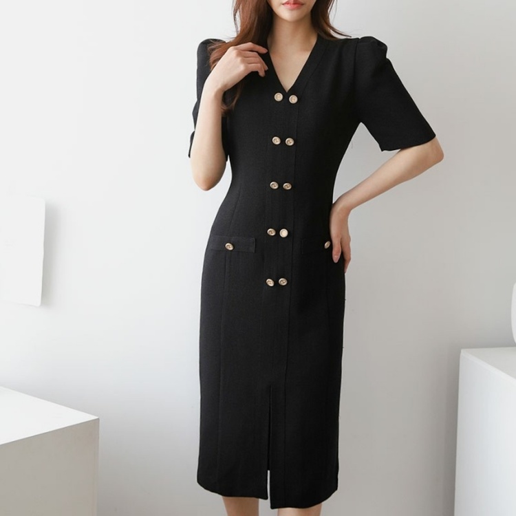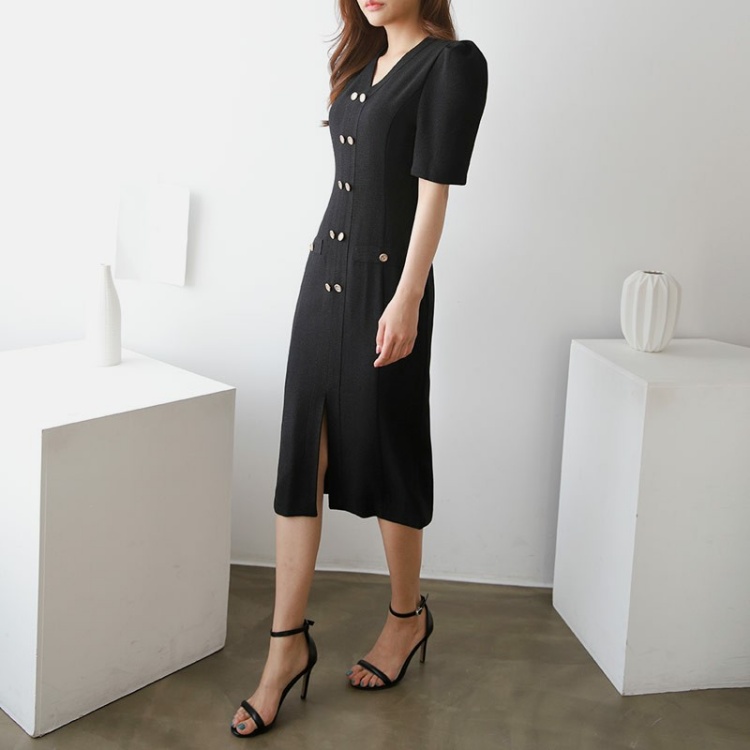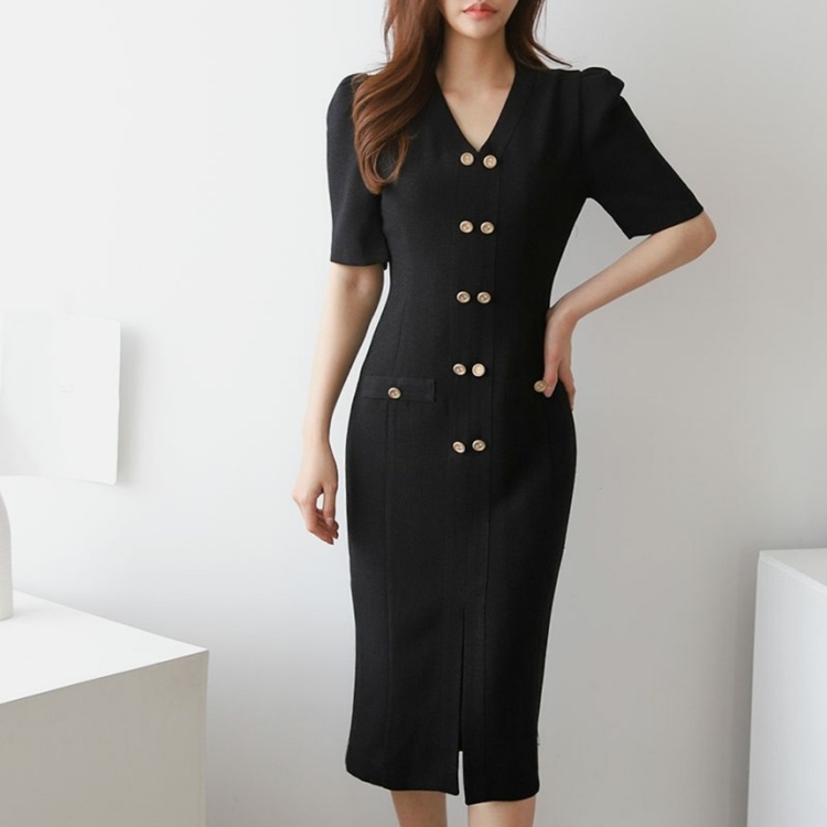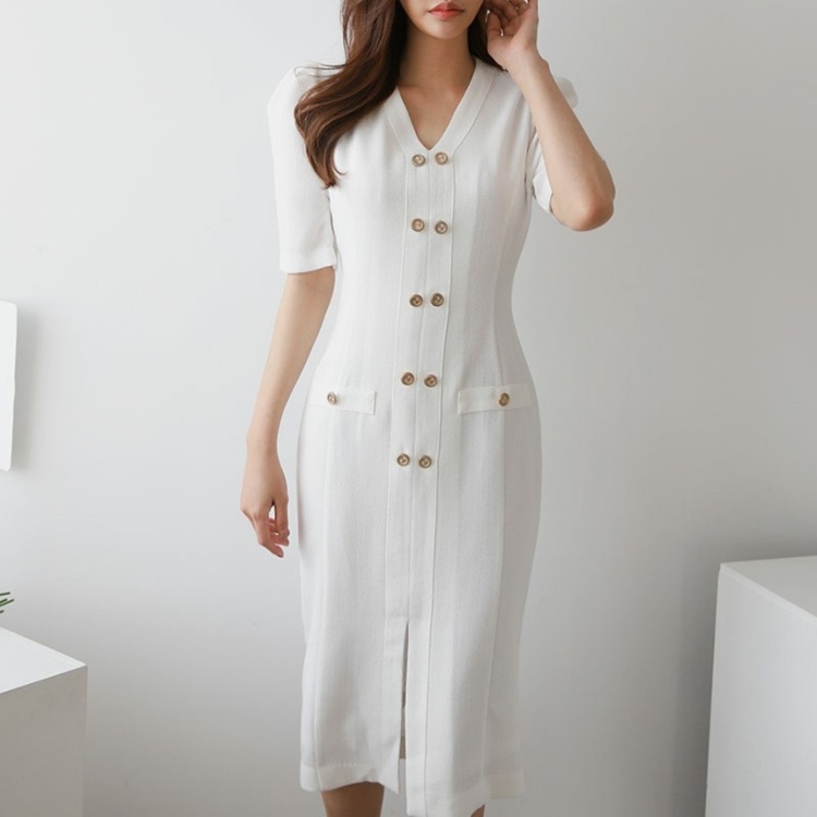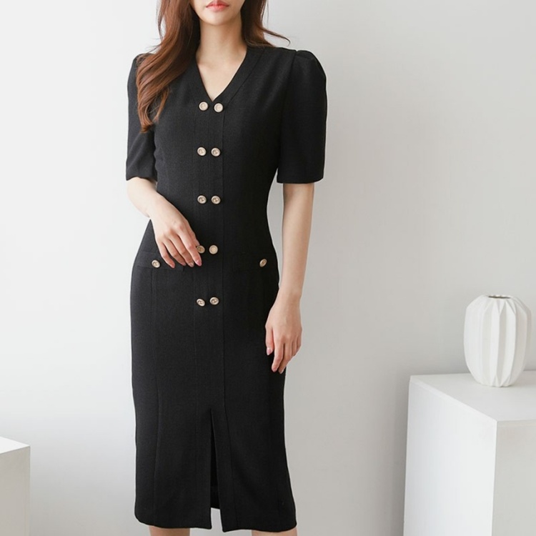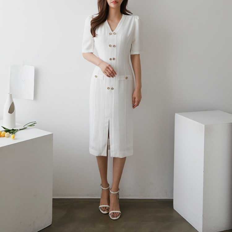 네크라인부터 밑단 앞 슬릿까지 연결된