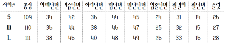 사이즈 선택 시 참고하여 주문 부탁드리며,