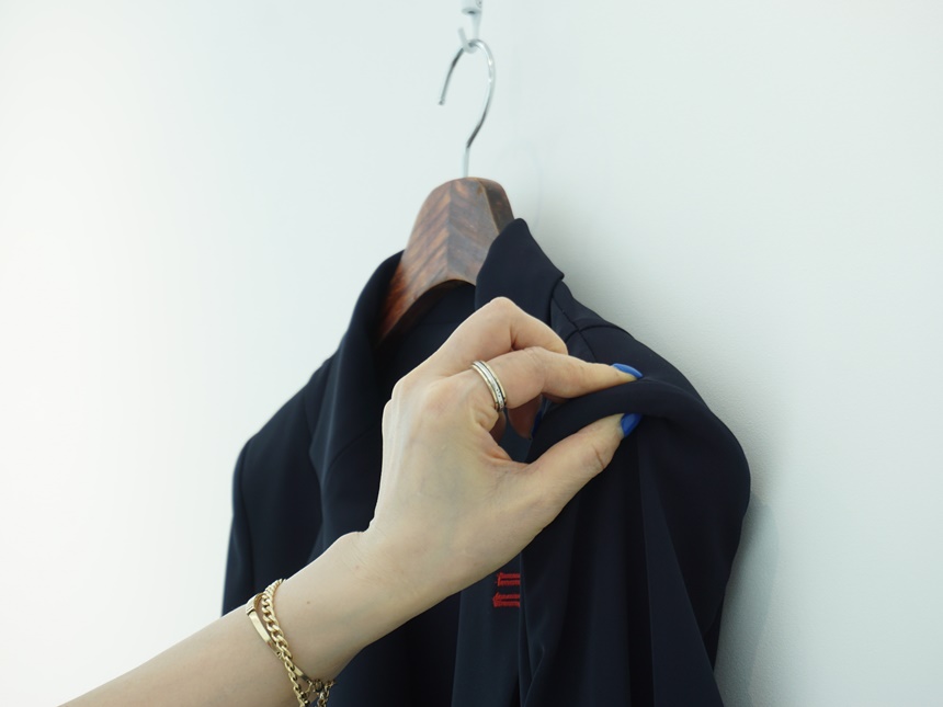 어깨 패드가 있어 딱 떨어지는 어깨선과