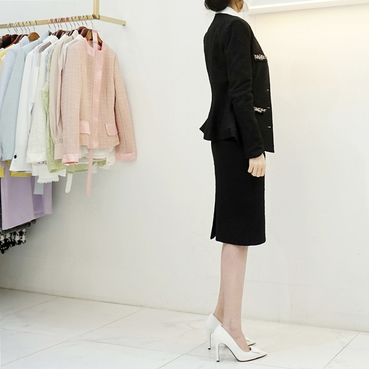블랙 컬러는 가벼운 트위드 소재로